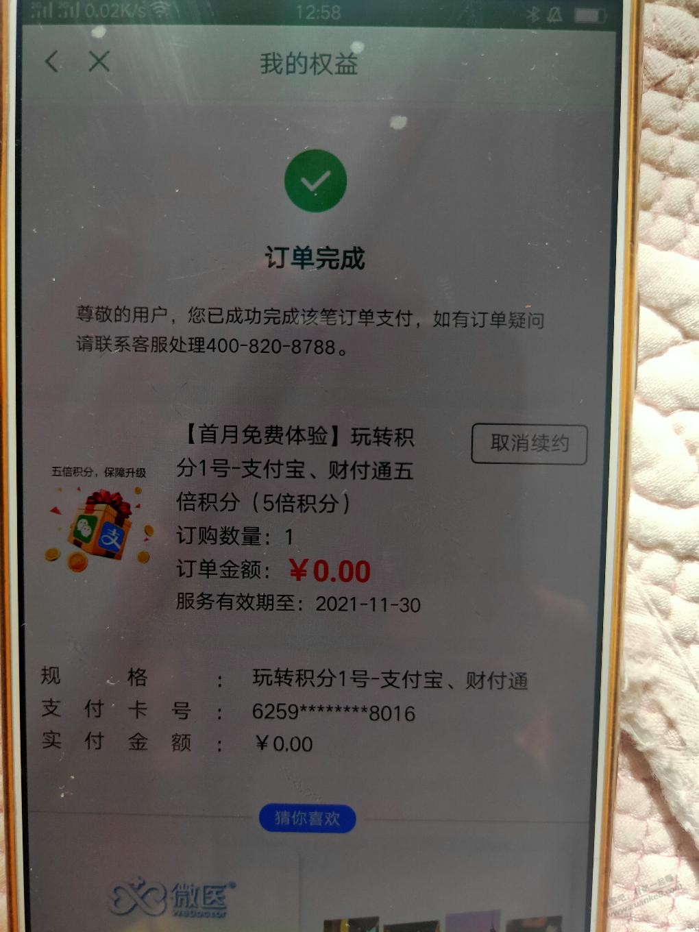 定完后,点下取消续约,11月免费体验一个月,支付宝,财付通,5倍积分。。