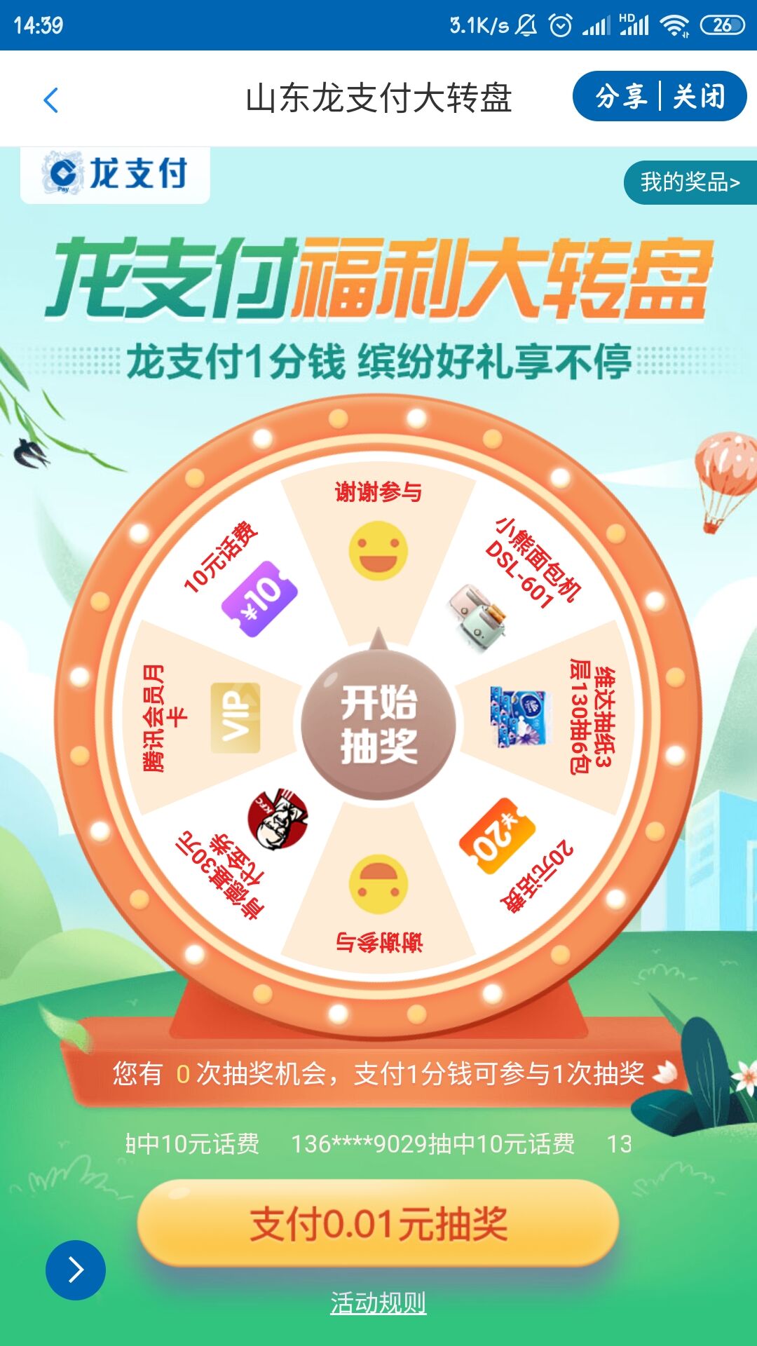 建行龙支付山东用户,新老用户1分钱10元话费,新用户1元20元话费
