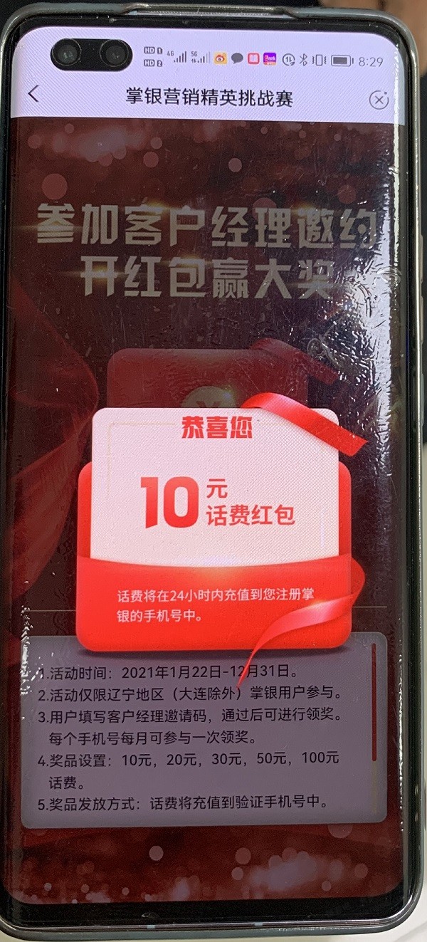农行掌银扫码抽奖小水(辽宁地区除大连外)