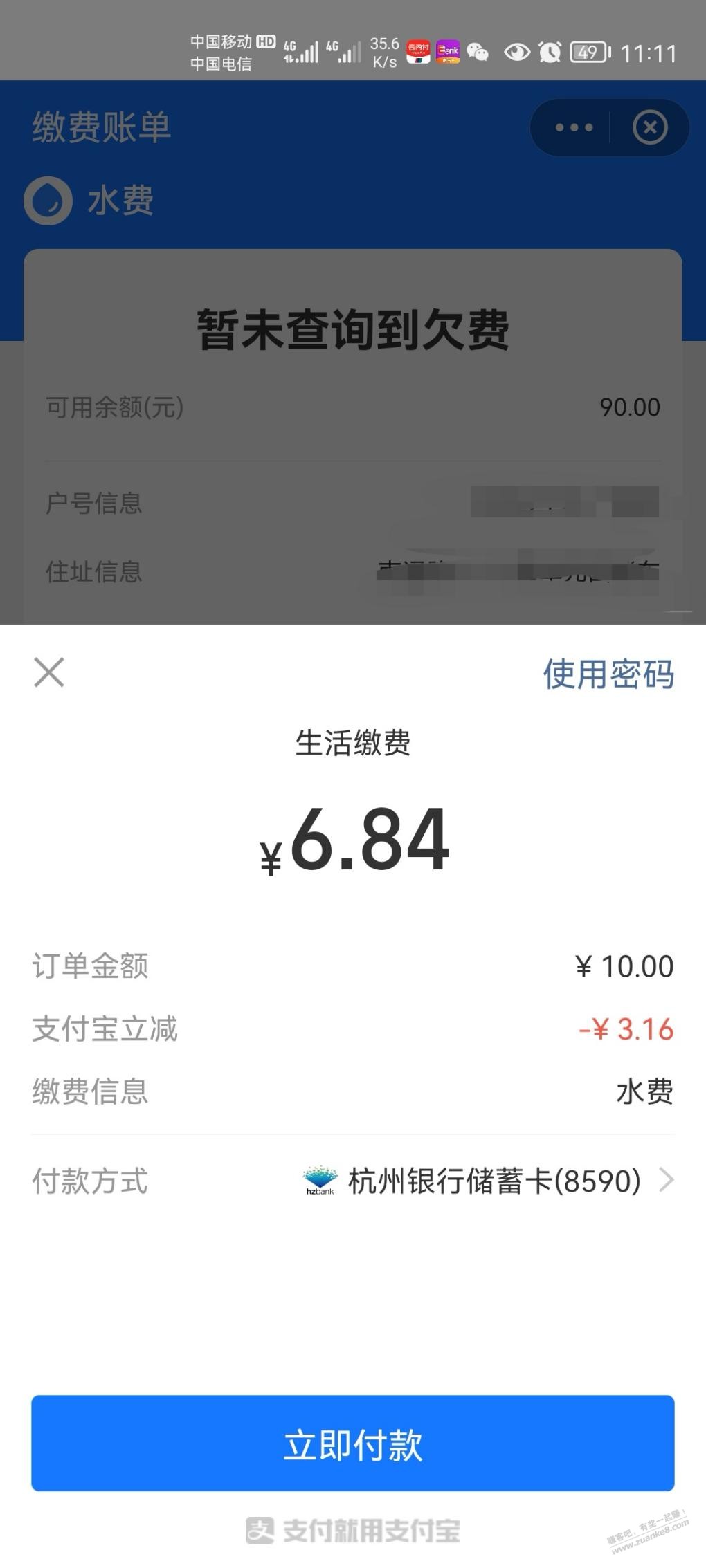 杭州银行,支付宝,生活缴费,3次,速度又有了,10-3+