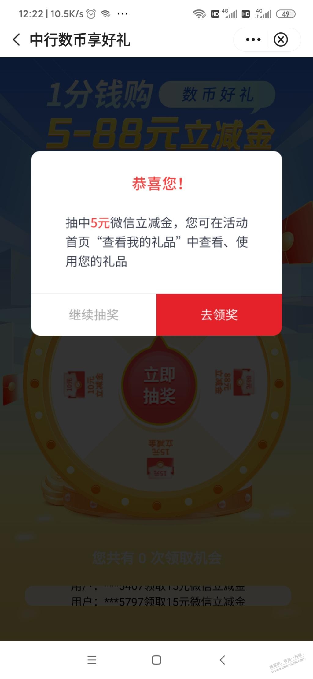 打开中行APP首页自动谈一分钱购买立减抽奖。需要开通了数字钱包