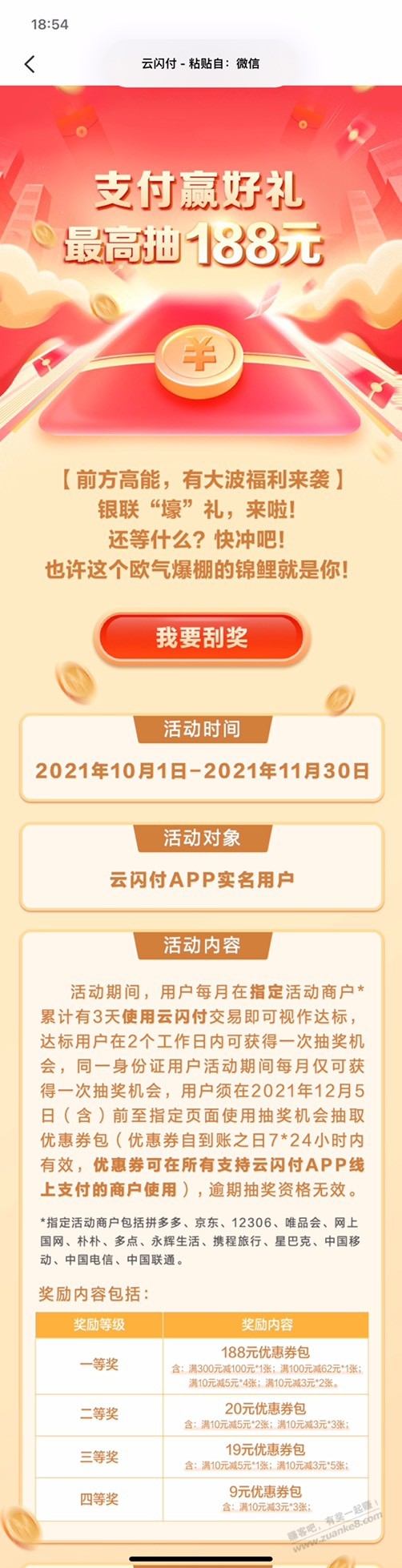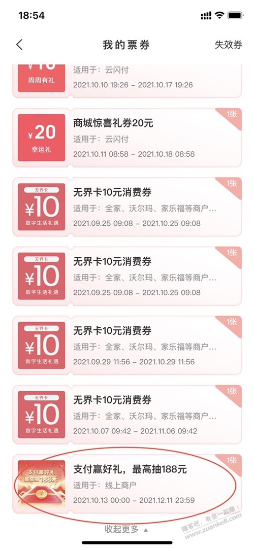 指定商户消费3笔,活动入口「我的-奖励-我的票券-拉到底」