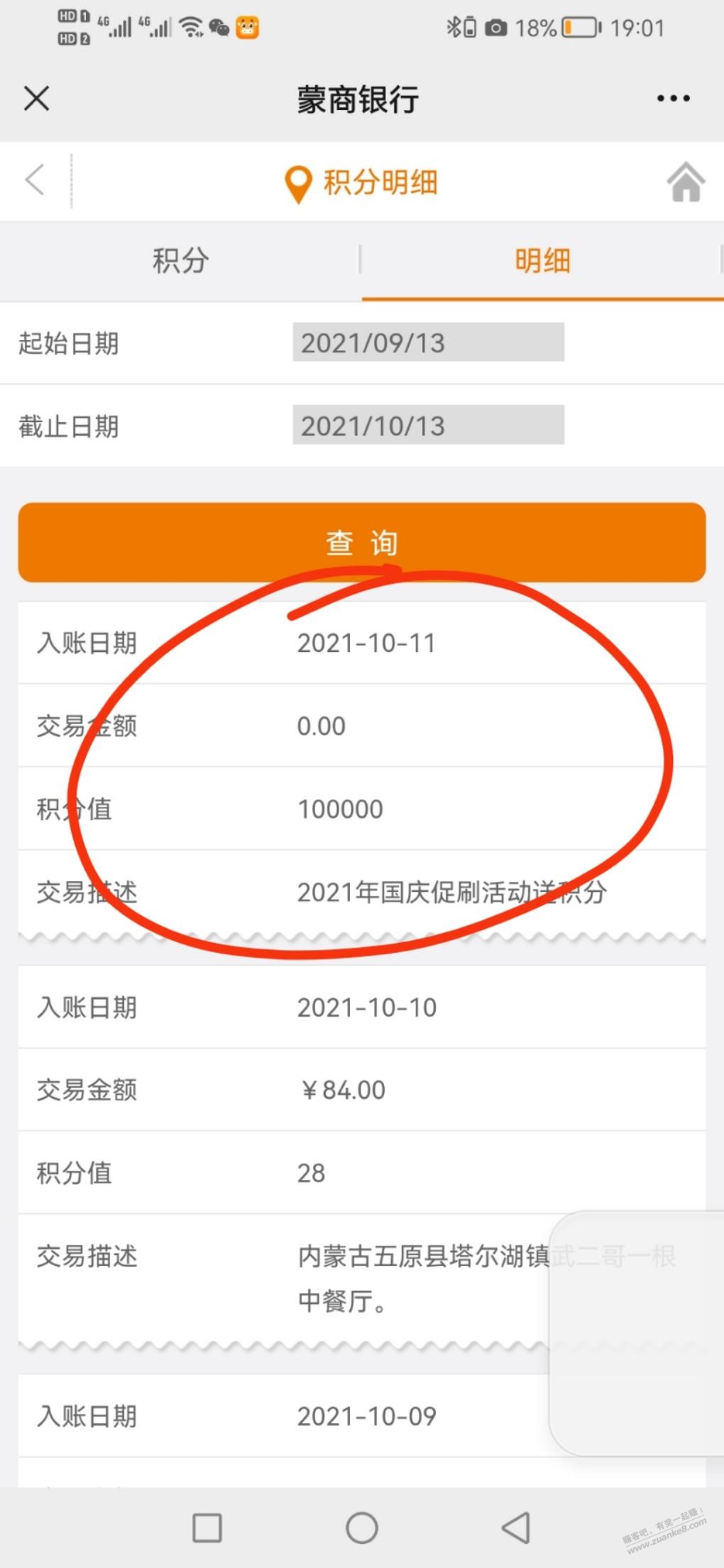 蒙商银行国庆活动送的10万积分已到账记得使用,这个积分有效期短及时使用