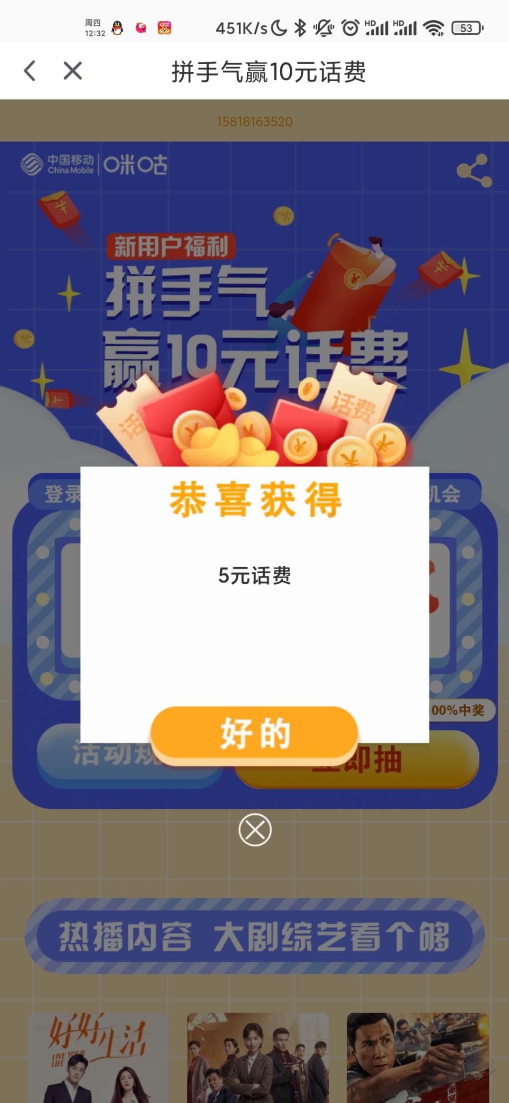 第一波 咪咕视频6个月未登录过的—我的—活动中心—找到百万豪礼抽5-10元话费