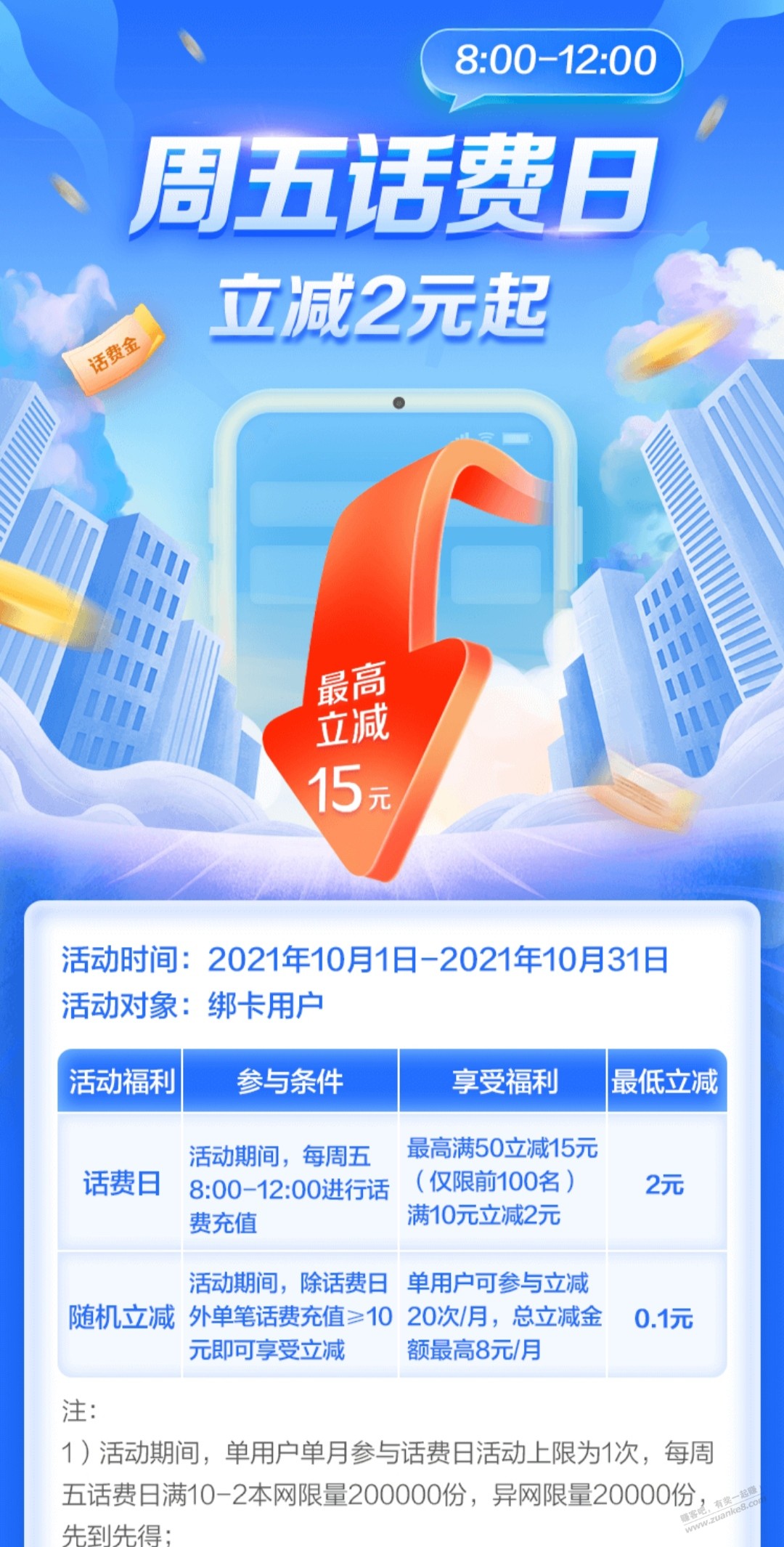 翼ZF周五话费日满10元立减2元