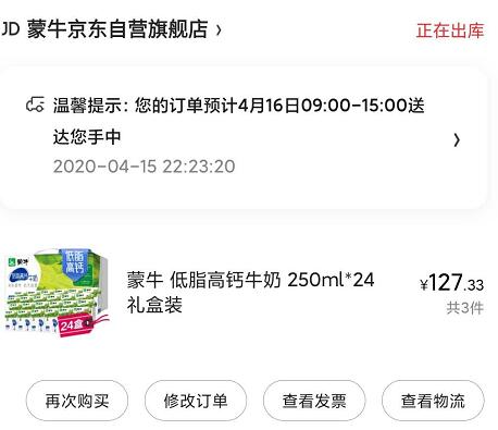 京东高钙低脂奶牛奶好价 1.81元一盒