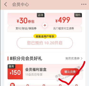 2.铂金会员–8积分兑换会员礼,可领一张3块
