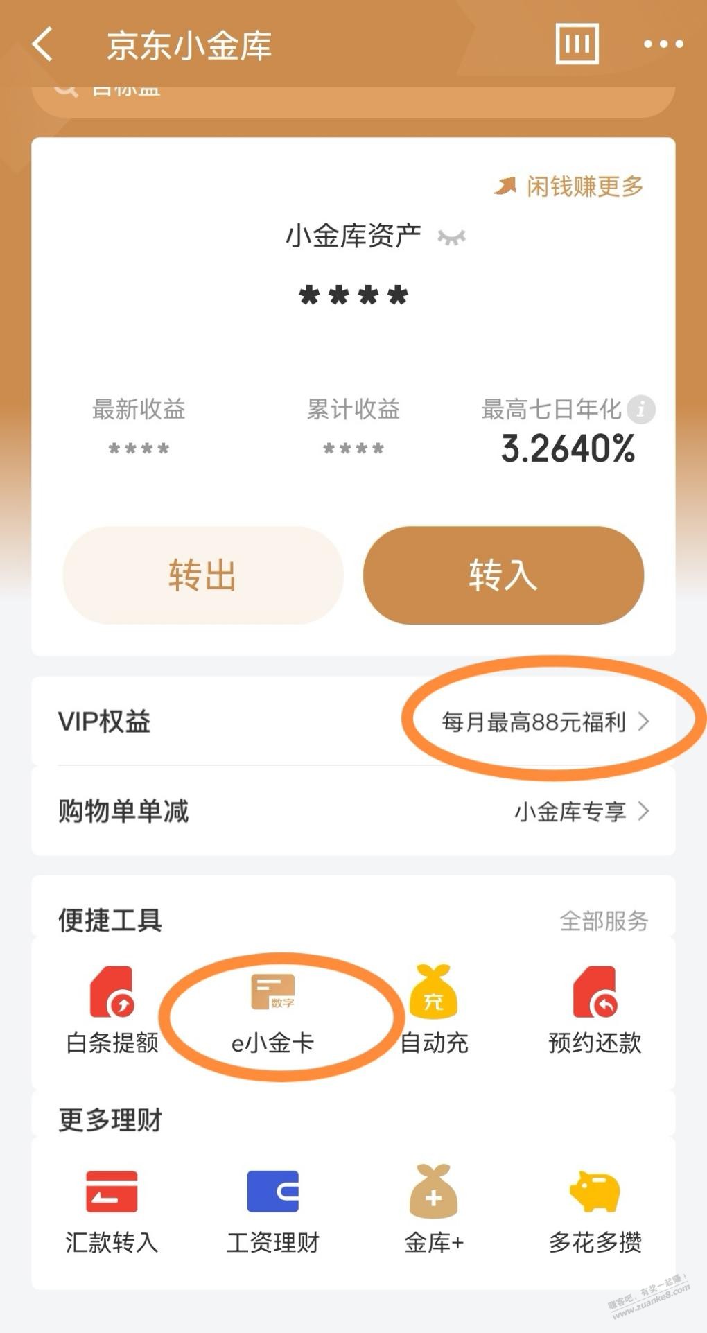 首先进入京东小金库,开通e小金卡,绑微信,得6元券,然后进入小金库,开通小金库vip,学理财知识得7天,然后点小金库自动充,开800的就可以,这个自动充意思是小金库余额低于800自动从指定银行卡转入。