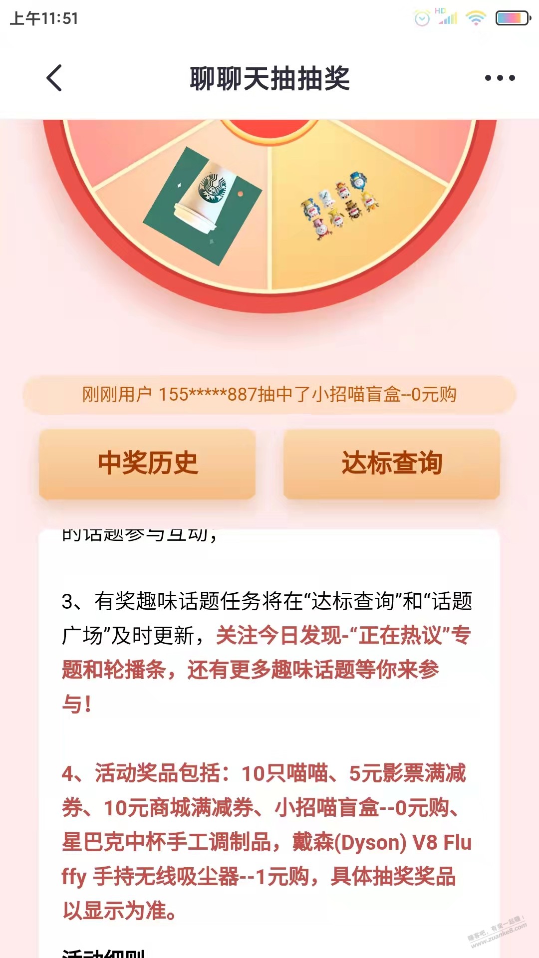 掌上生活,今日发现,聊天抽大奖有水