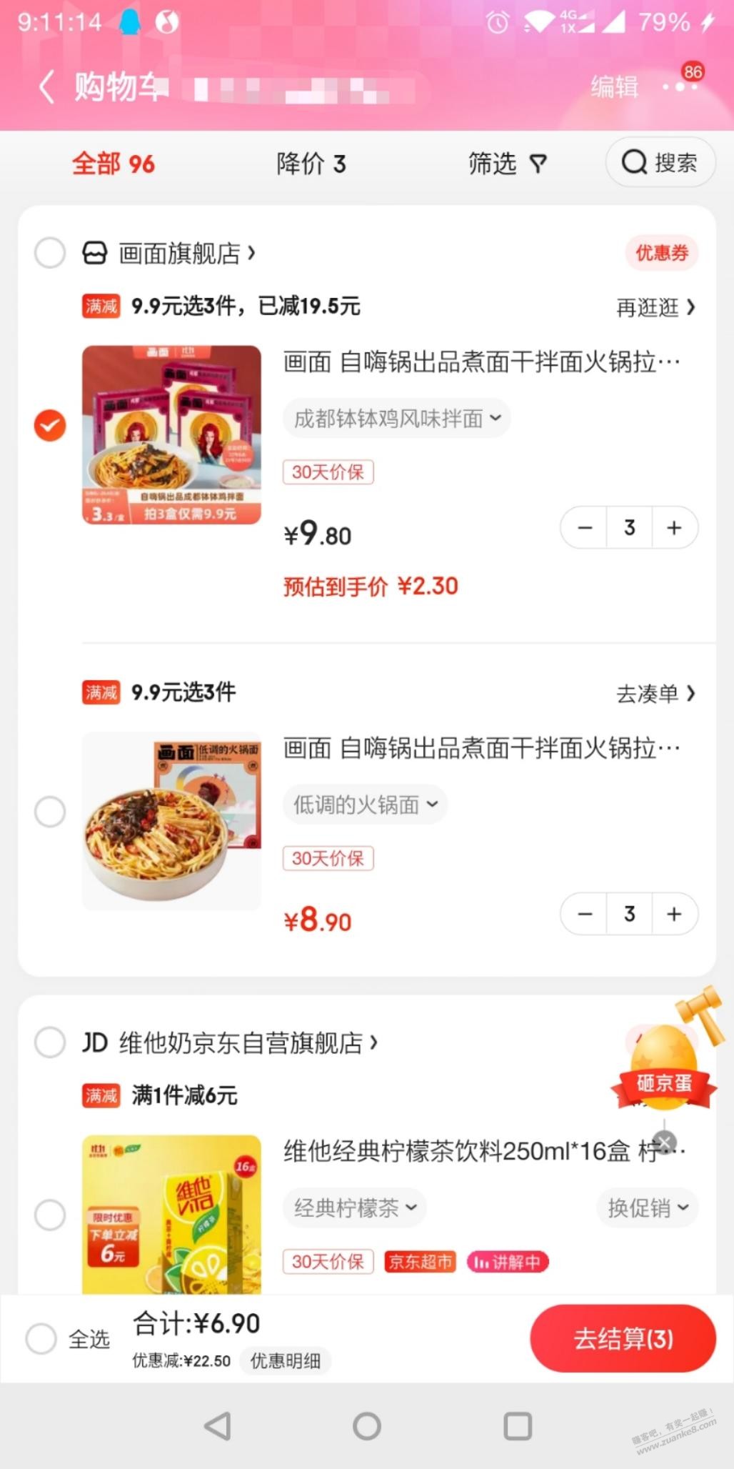 直接拍三件.商品下领29-3.到手6.9元三盒