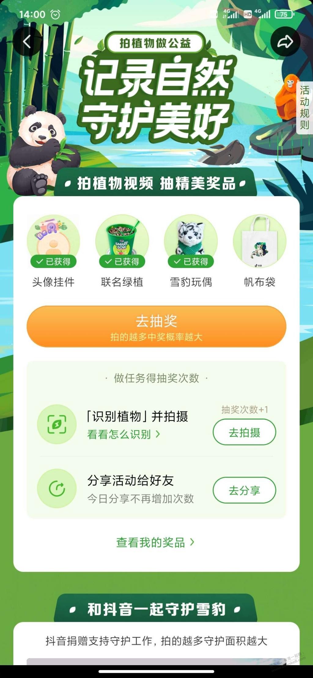 抖音首页,拍植物抽奖,活动刚开始,大概率中奖,冲冲冲