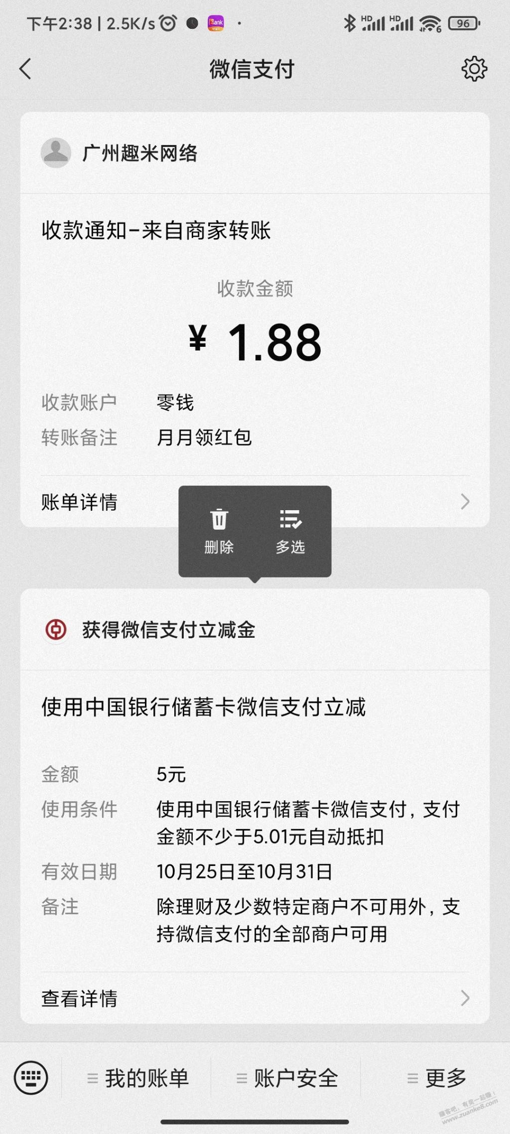 中国银行微银行立减金