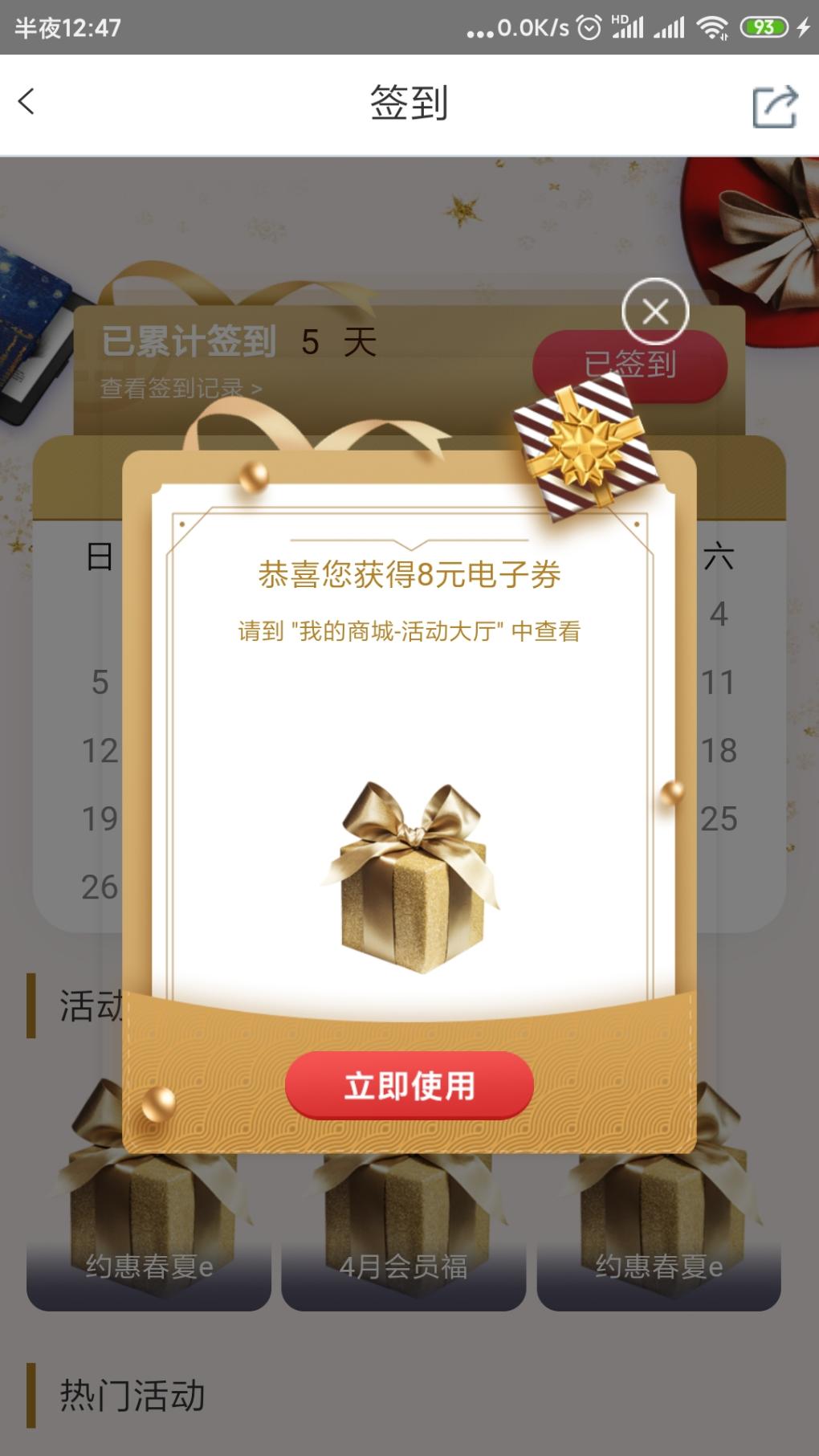 融e购APP——e购超市——中间横幅4月会员签到有礼——刚中了8元券,没抽的试试!