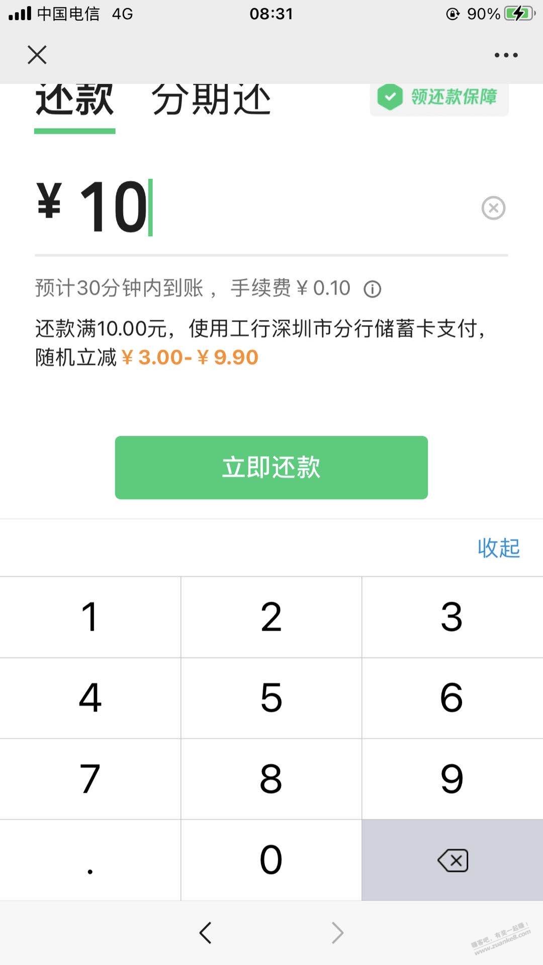 微信还款10,选深圳工行储蓄卡随机减,每个微信可还3笔,还款前可见优惠,无优惠不要还