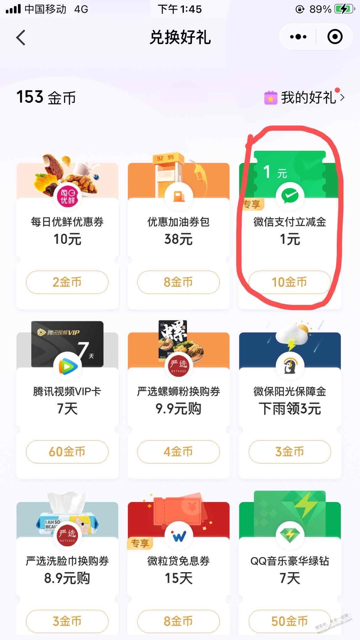 兑换1元立减金