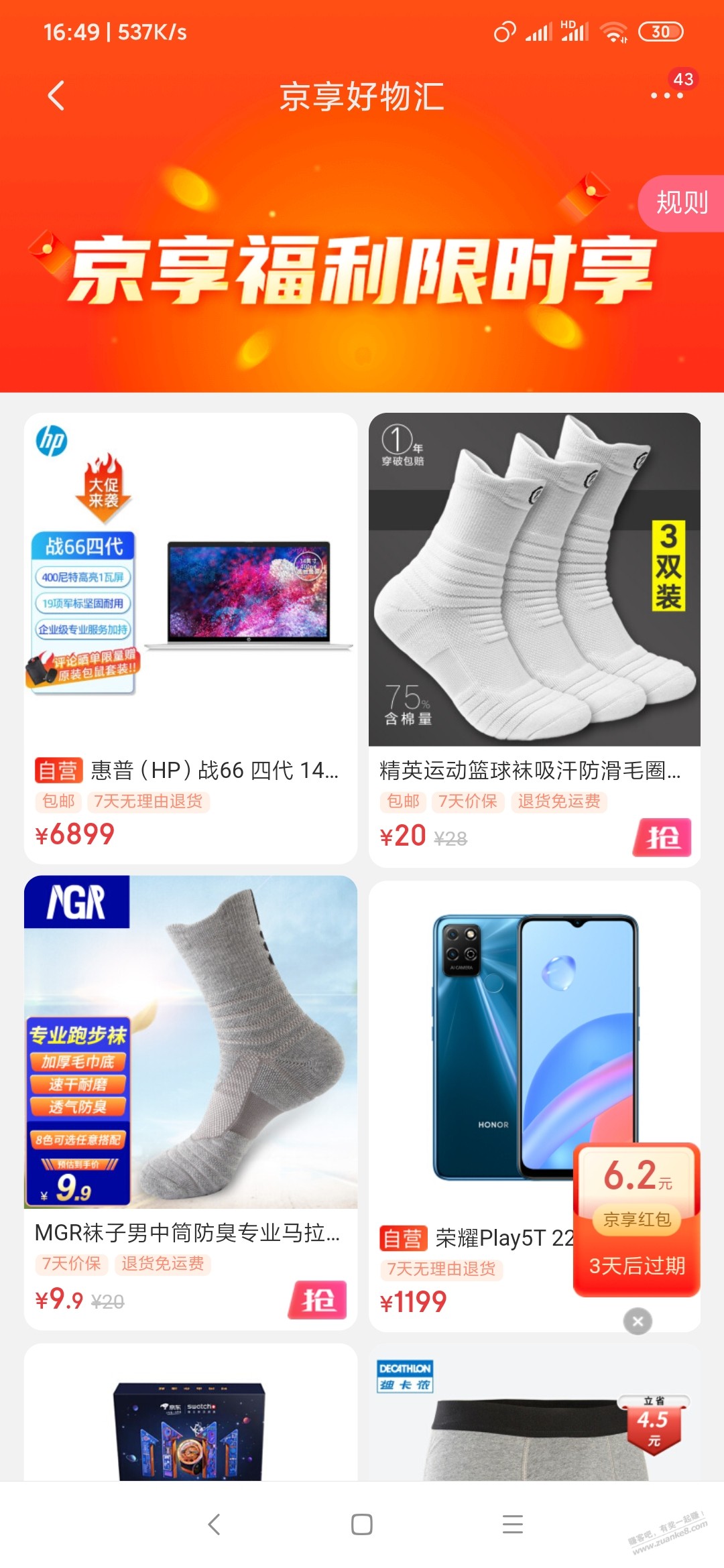 京东6.2红包领到加果