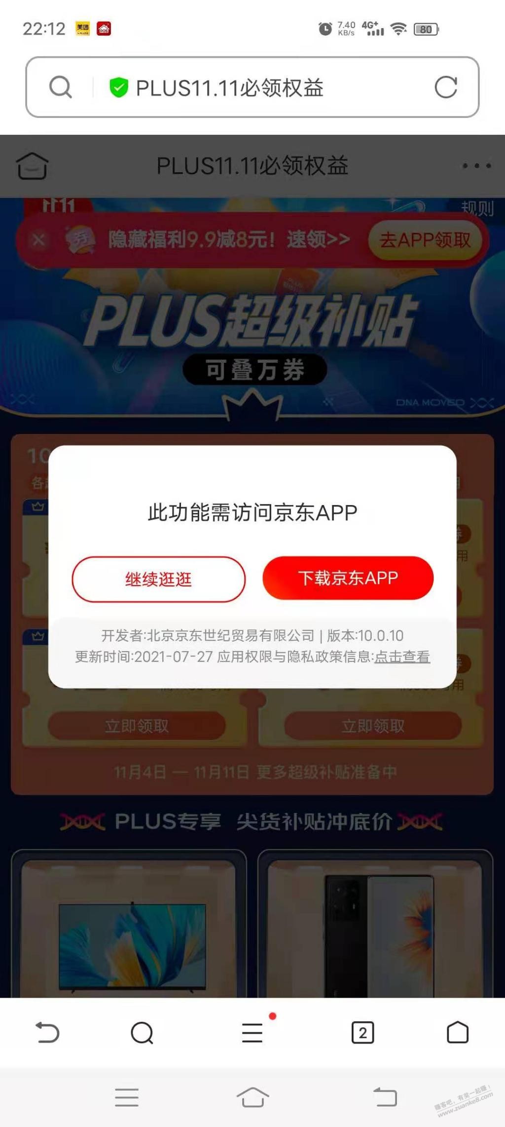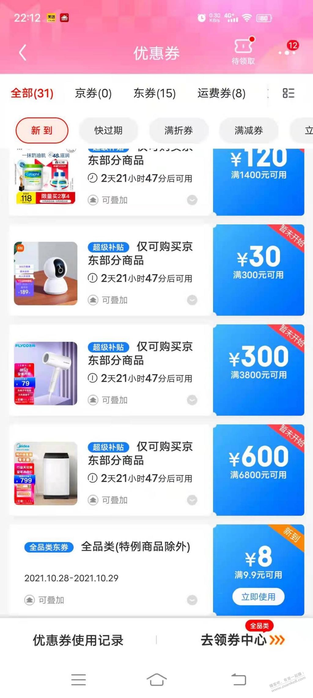 京东大额券页面出现9.9-8隐藏券