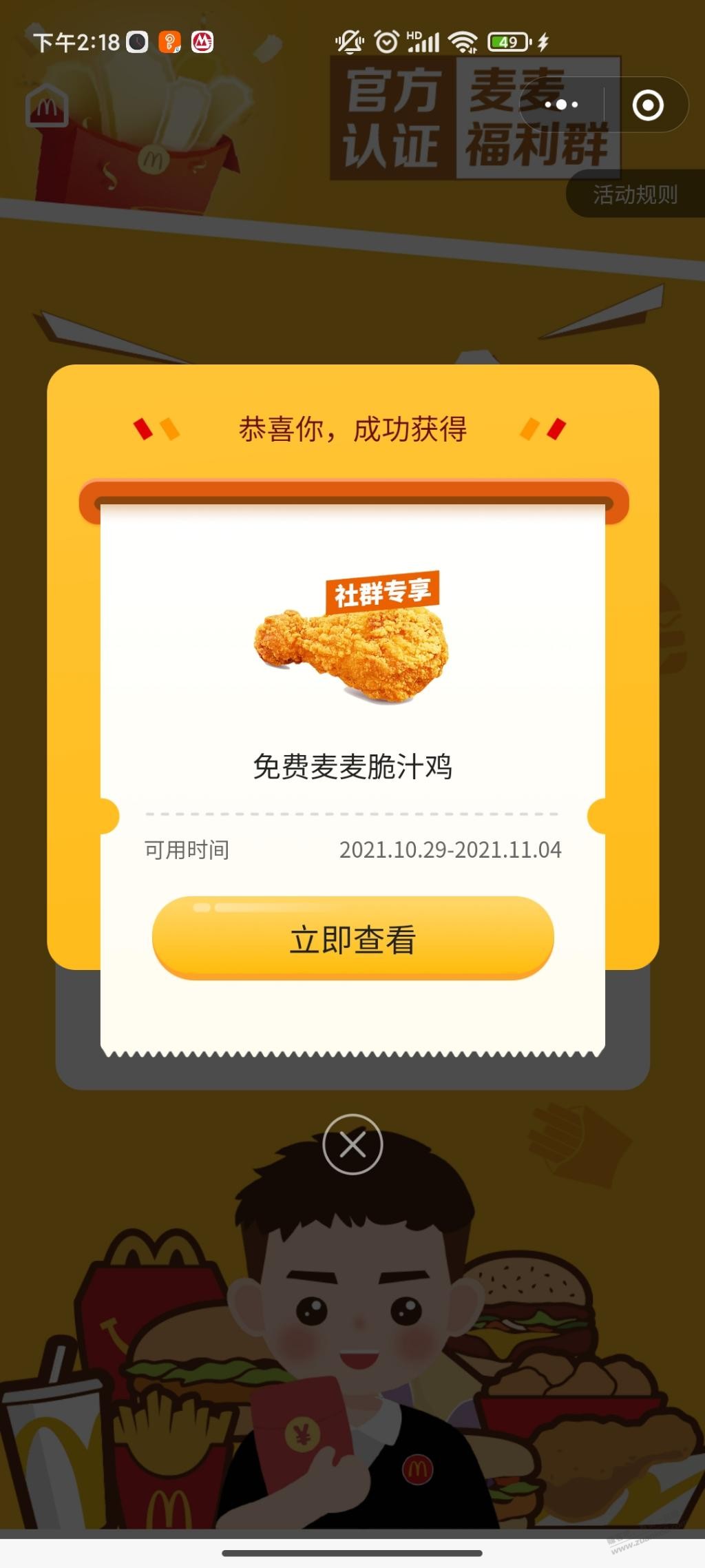免费麦麦脆汁鸡,口令:叮咚一个麦麦种草官待领取,速度