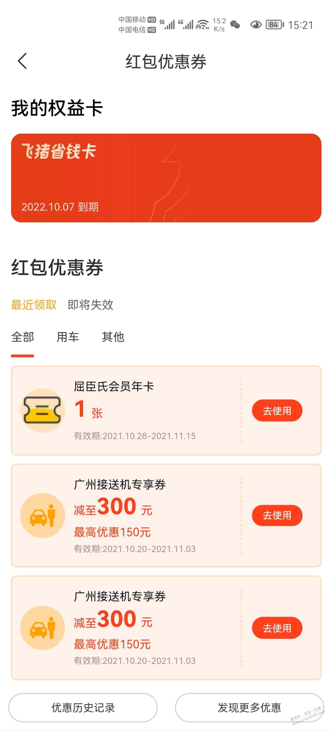 飞猪旅行双十一抽奖,刚刚中一张屈臣氏年卡