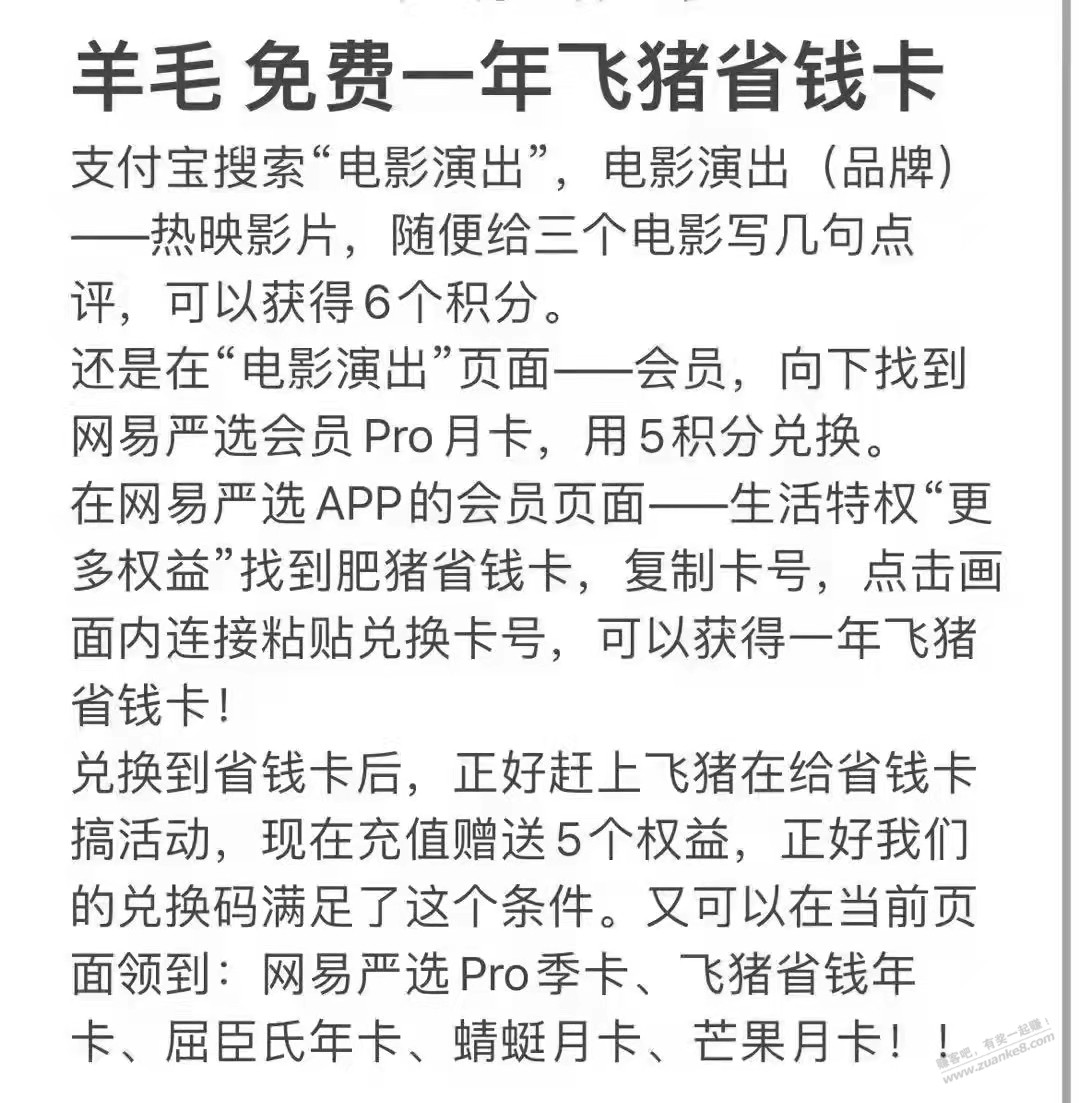 免费一年飞猪省钱卡,附带严选pro屈臣氏芒果月卡