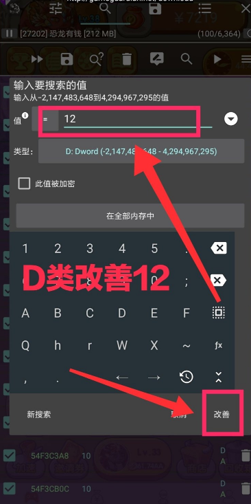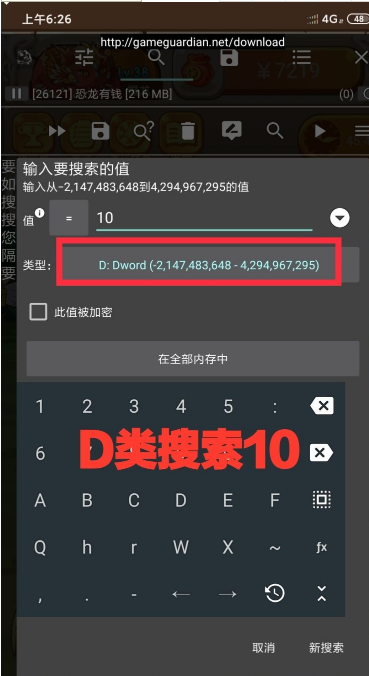 第四步:打开GG搜索10,D类型搜索(见图二)