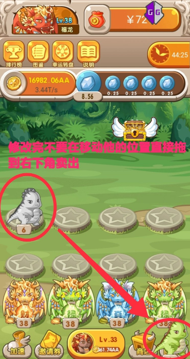 Ps:修改完76不要再移动龙到别的坑位,直接拖到右下角卖出