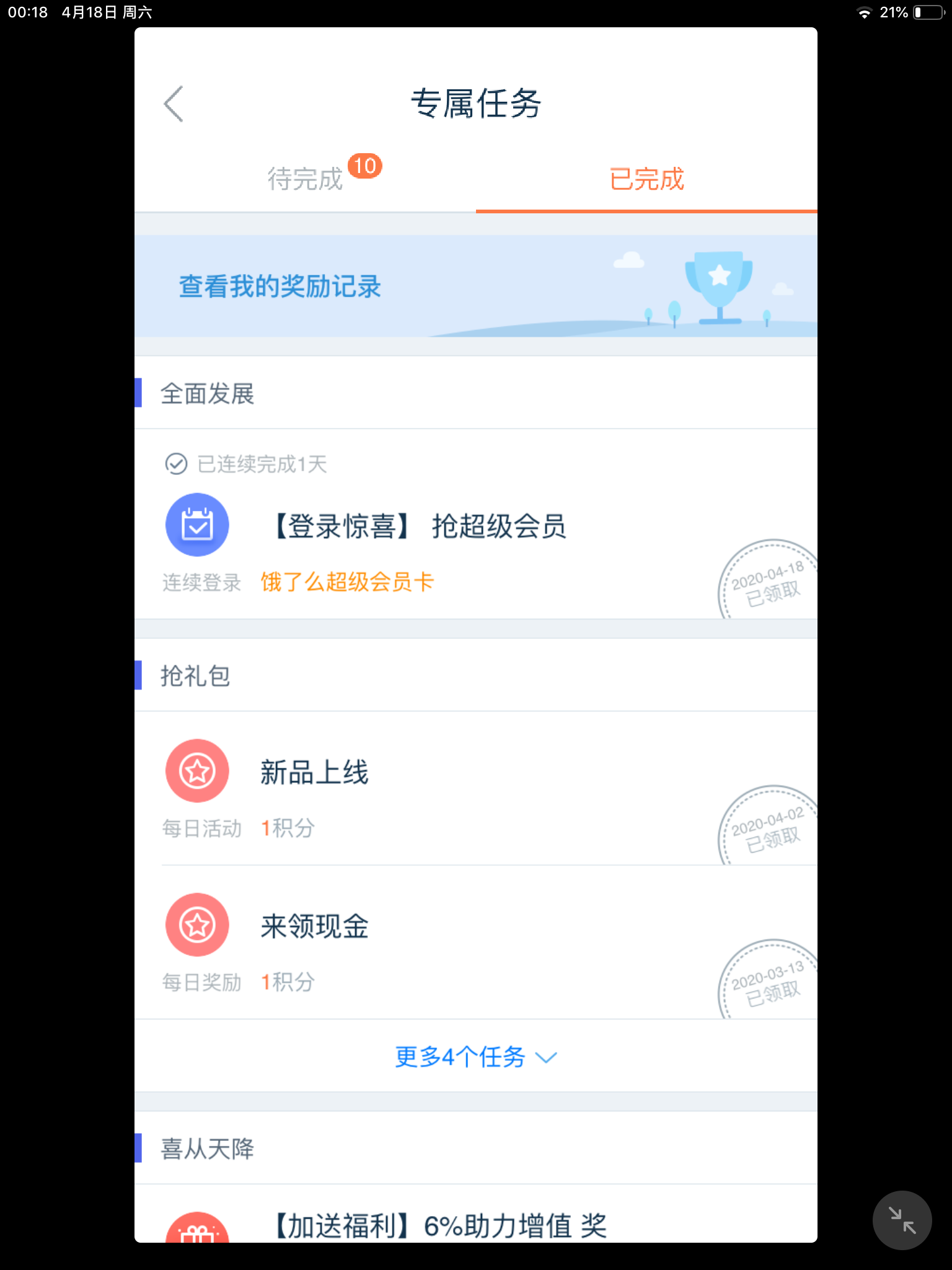 任务里面领