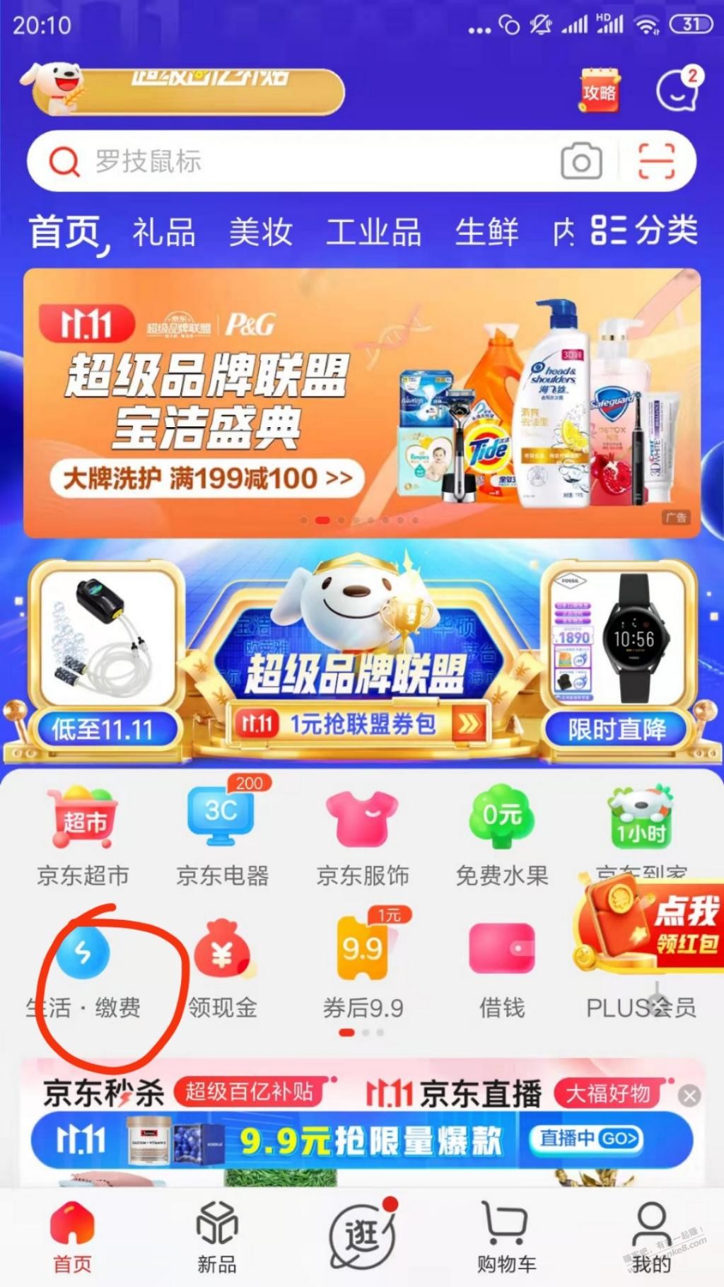 生活缴费点进去,自动弹,领到的加点果果,快没果续费了.