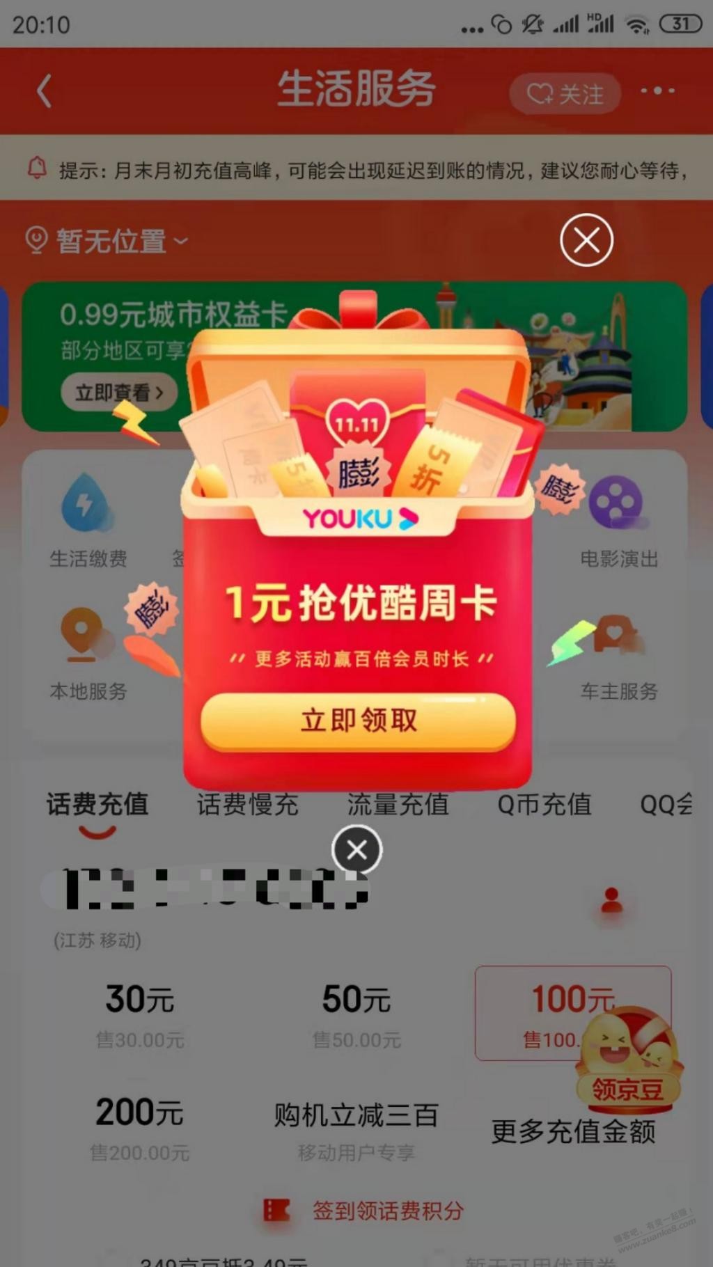 jd,优酷周卡1元.
