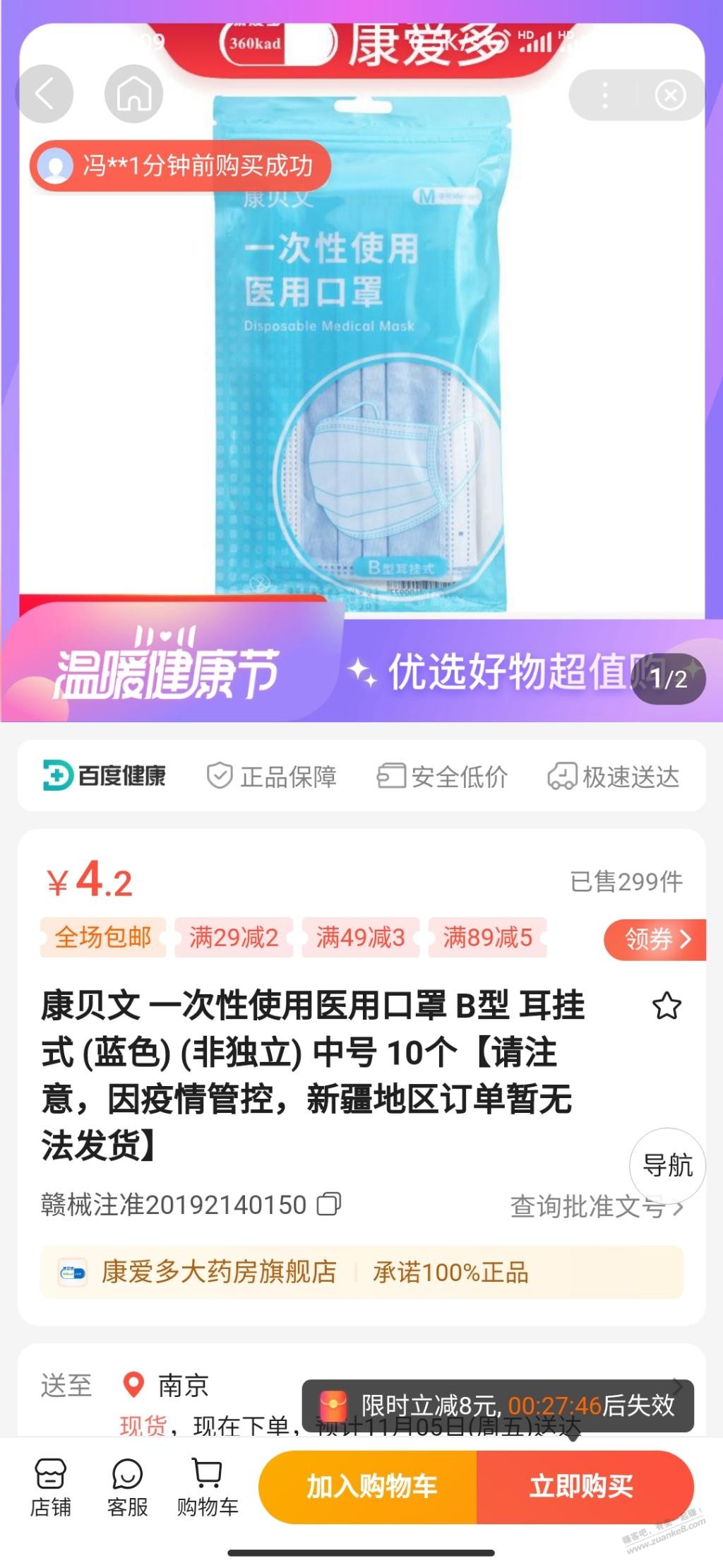 百度APP,我的,福利中心,温暖健康节,领医药新人券8.01-8 ,商城搜口罩 0.4 20个