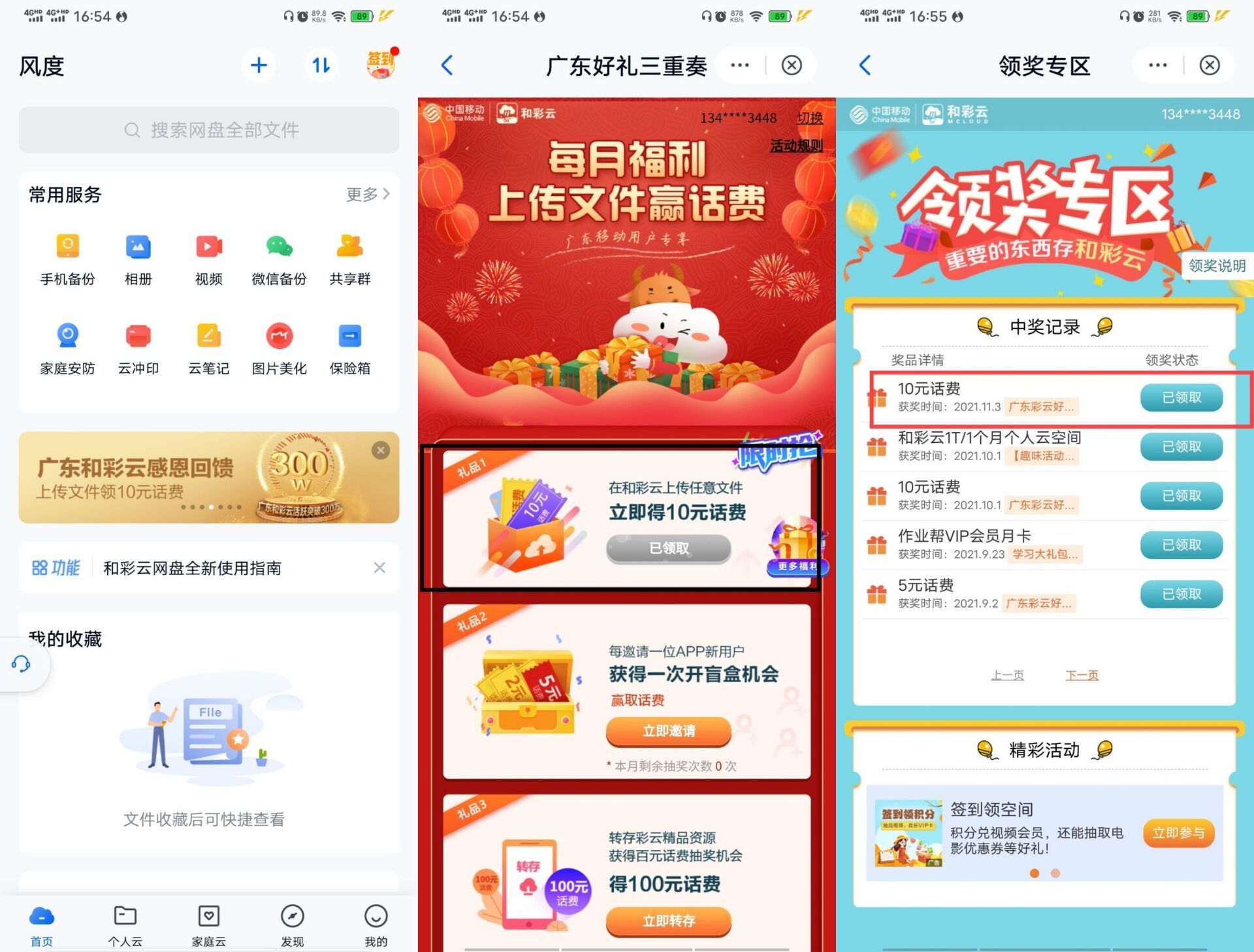 【广东移动用户领10元话费】新一期!各大应用下载“和彩云”->首页横幅进->根据提示完成任务!