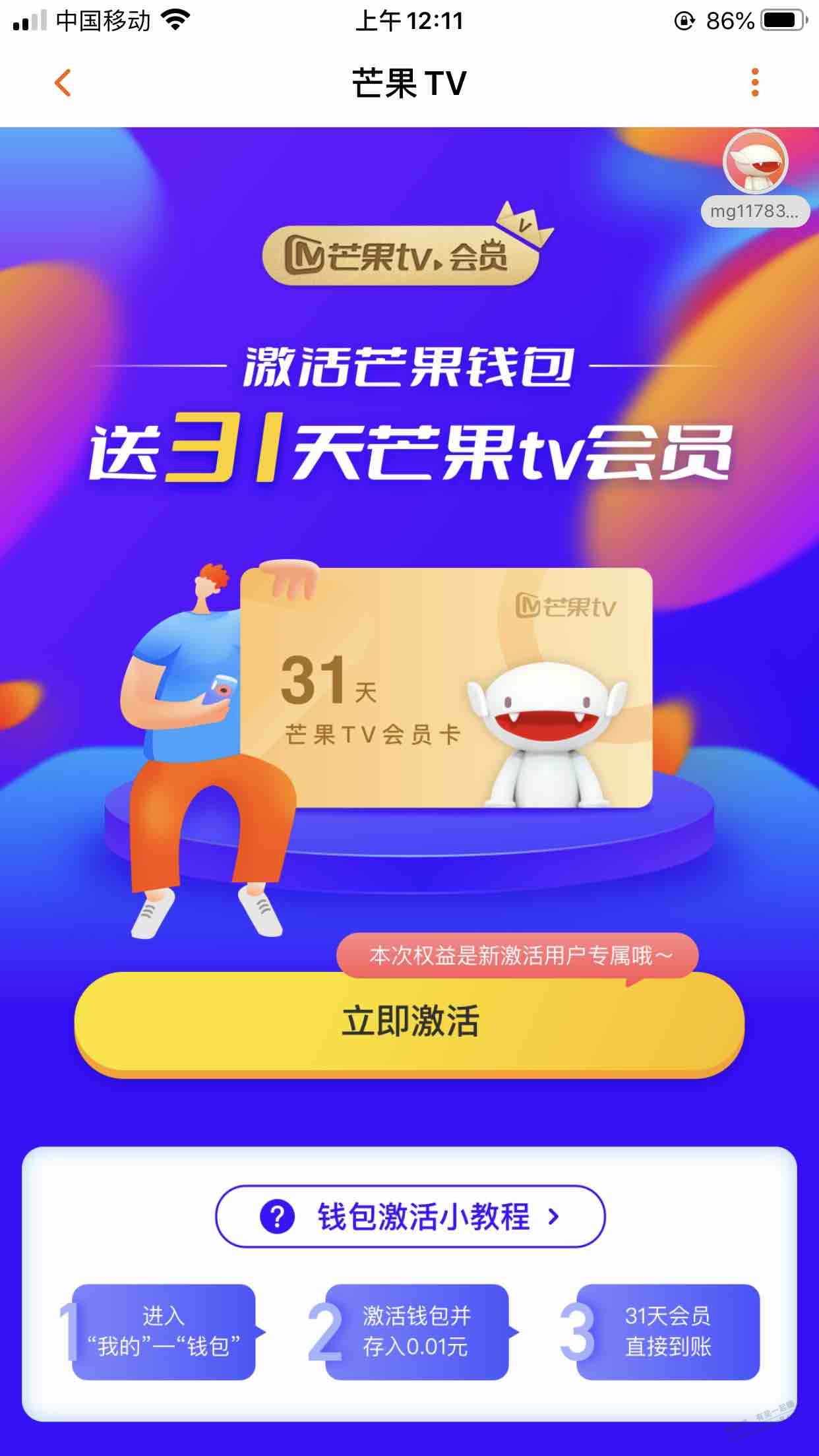 芒果TV一分钱会员