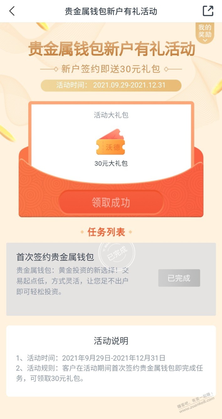 路径:交通银行app首页热门活动----贵金属钱包新户有礼,签约即送30元。其中10元直接吧码套,另20元买1克黄金后立即卖出,总计手续费3块多钱。