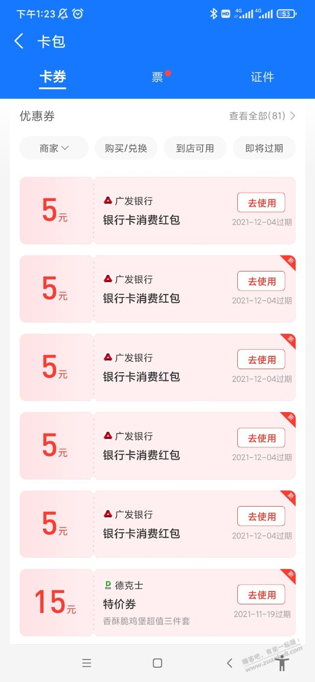 绑定了送了6张5元券