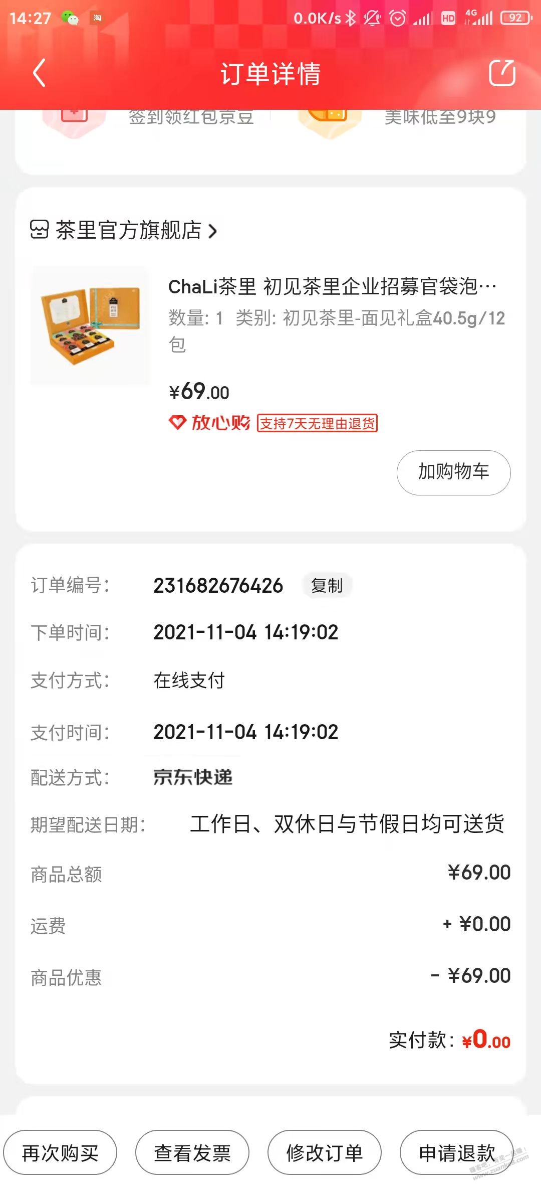 然后买 10038717132214 初见茶里-面见礼盒40.5g/12包,企业价69,包邮 0元,速度!!别忘了加果果哈