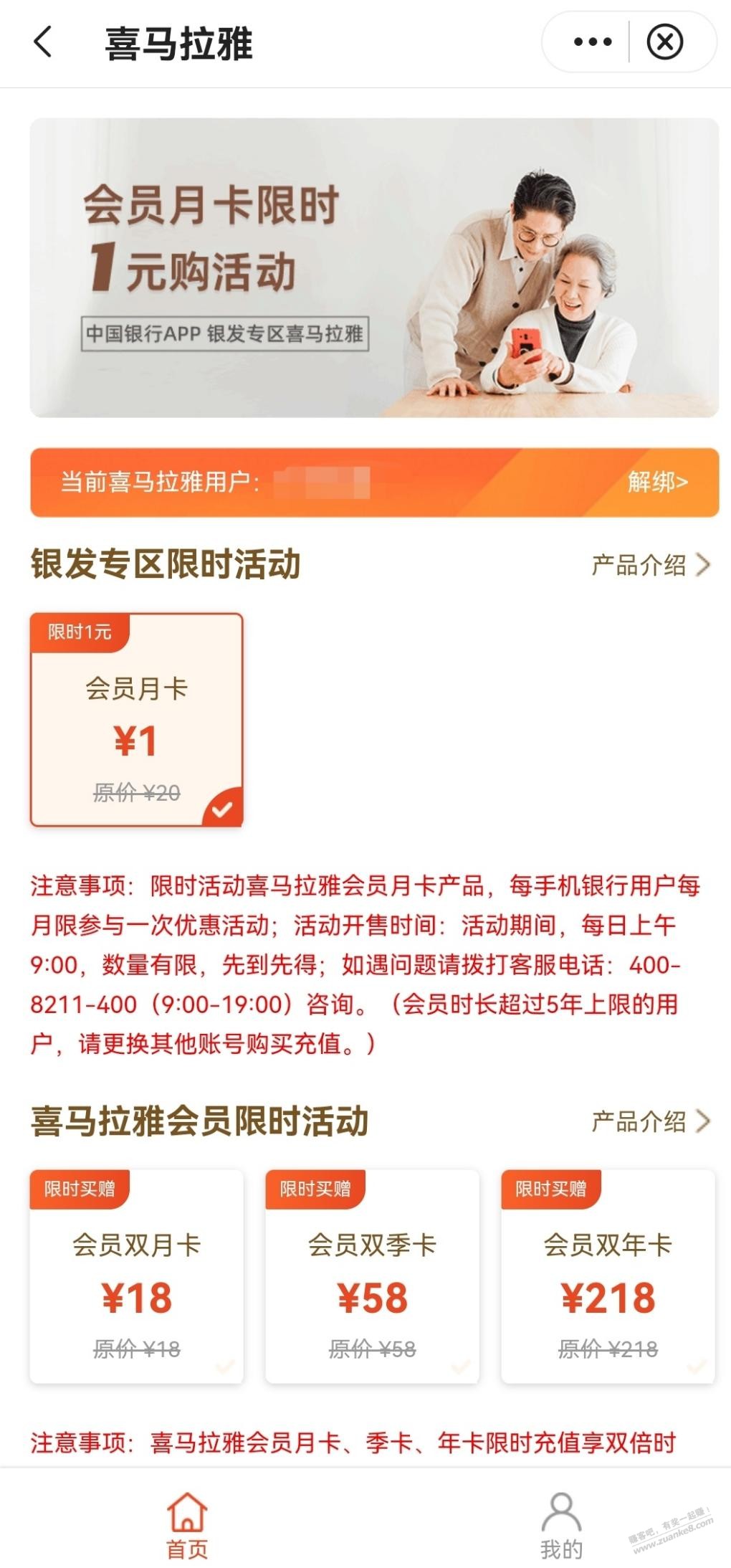 中国银行app,直接搜索喜马拉雅,1元开月会员。