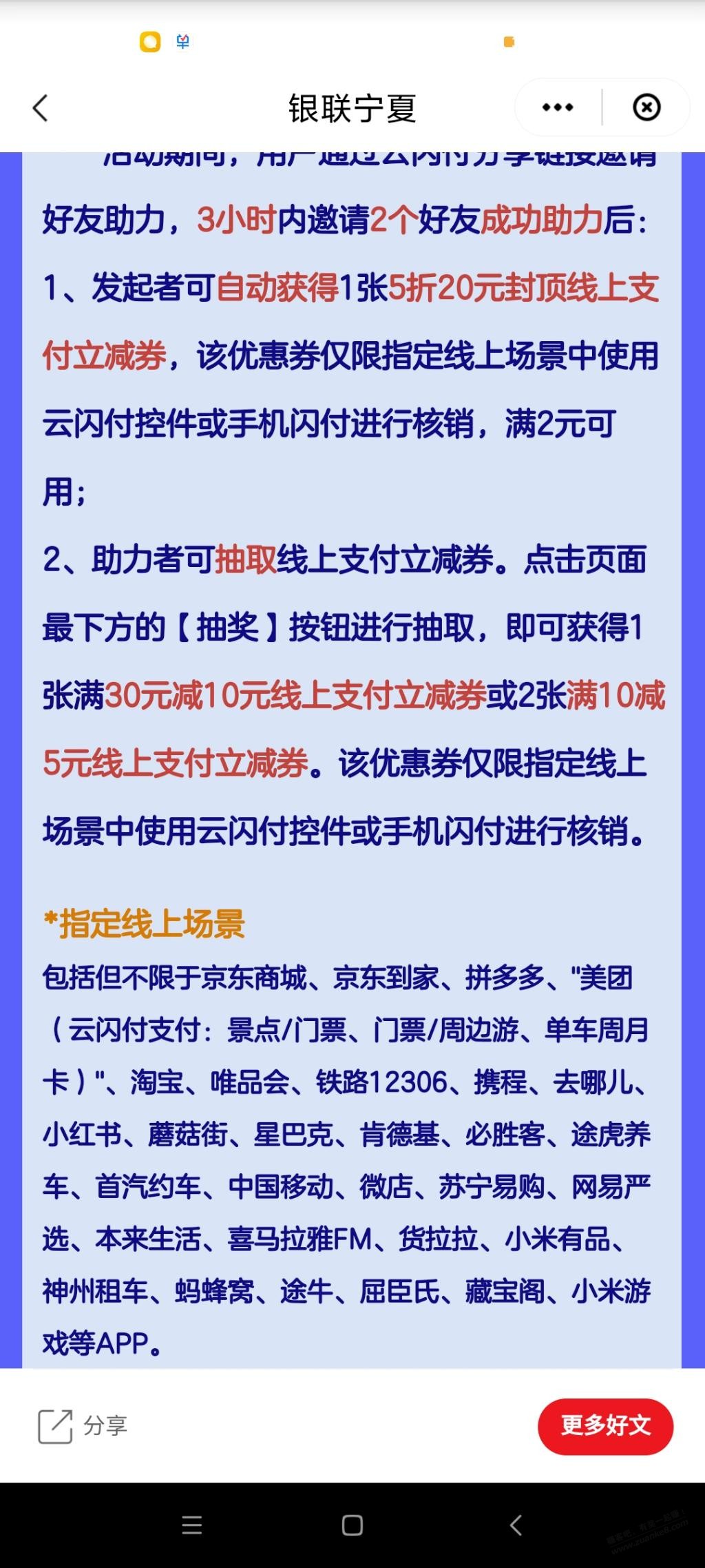 3人拼团,团长5折券最高-20,团员30-10一张或者10-5两张,微损直接淘宝翼支付或者e卡。重点是活动期间可以开团30次,最少500毛。暂时不清楚外地的能不能做团员,等我试成功给吧友分汤喝