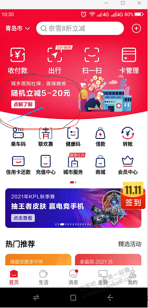 联通app缴费1.1元,云闪付跳转建行生活立减1元4次还有