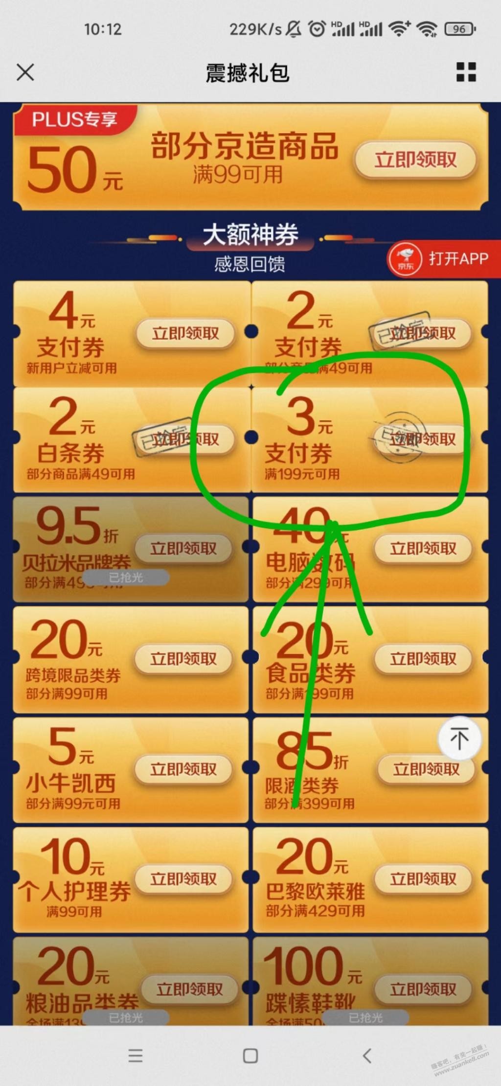 京东plus会员领199-3支付券