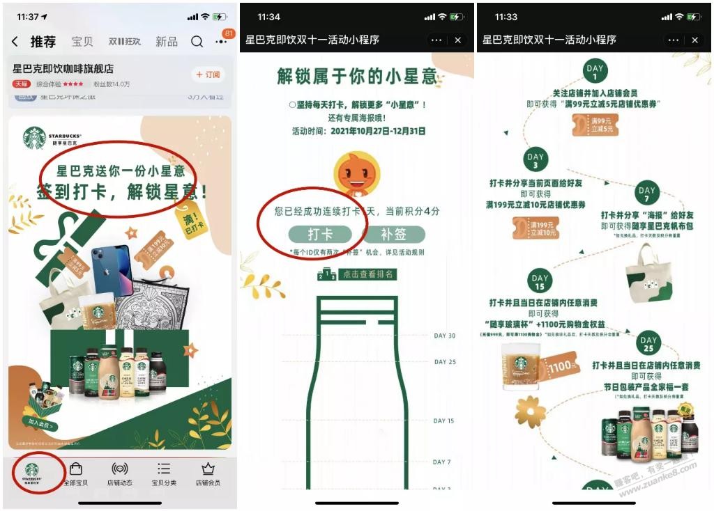 星巴克 打卡0元撸礼品