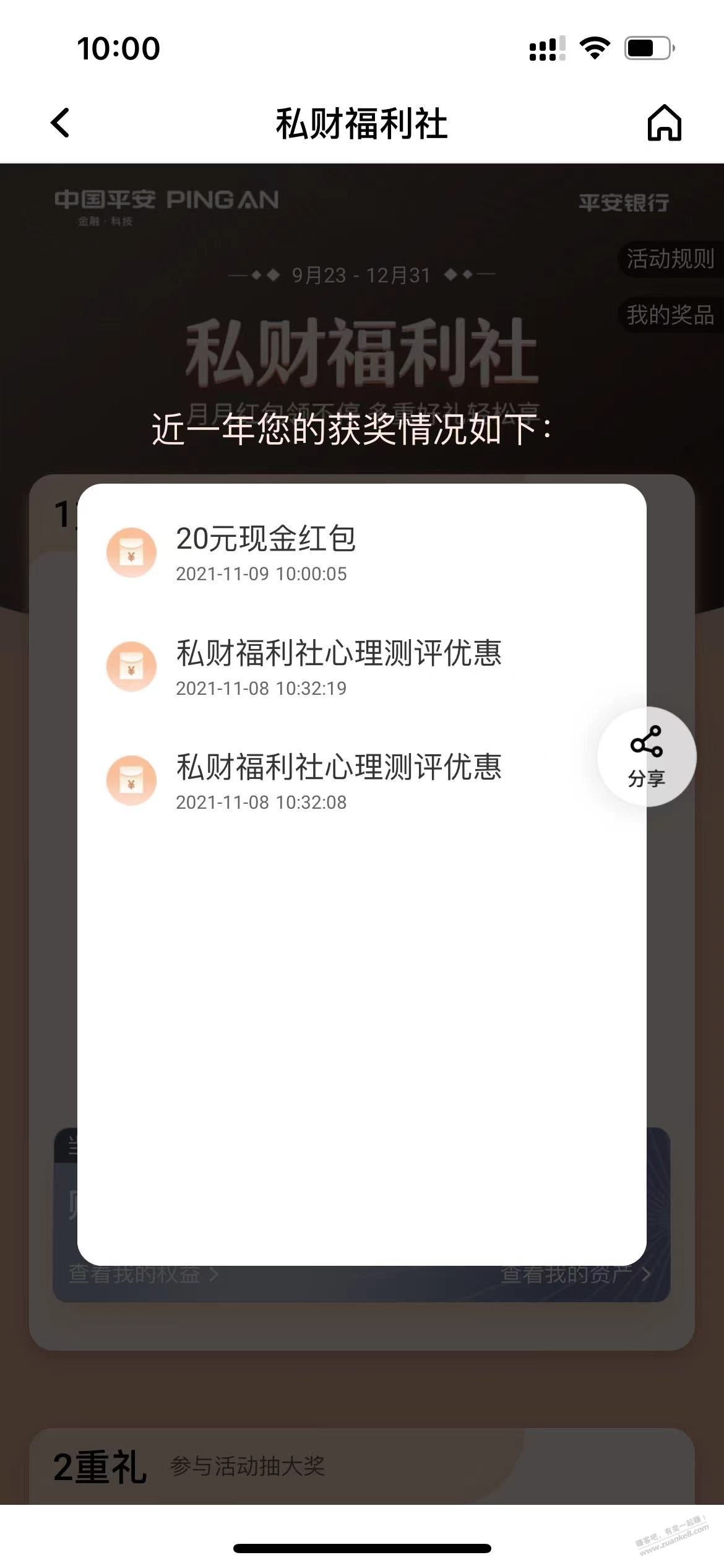 平安银行app 搜 私财福利社,领取20现金红包。 前提需要平安银行或者平安证券有50w+ 。