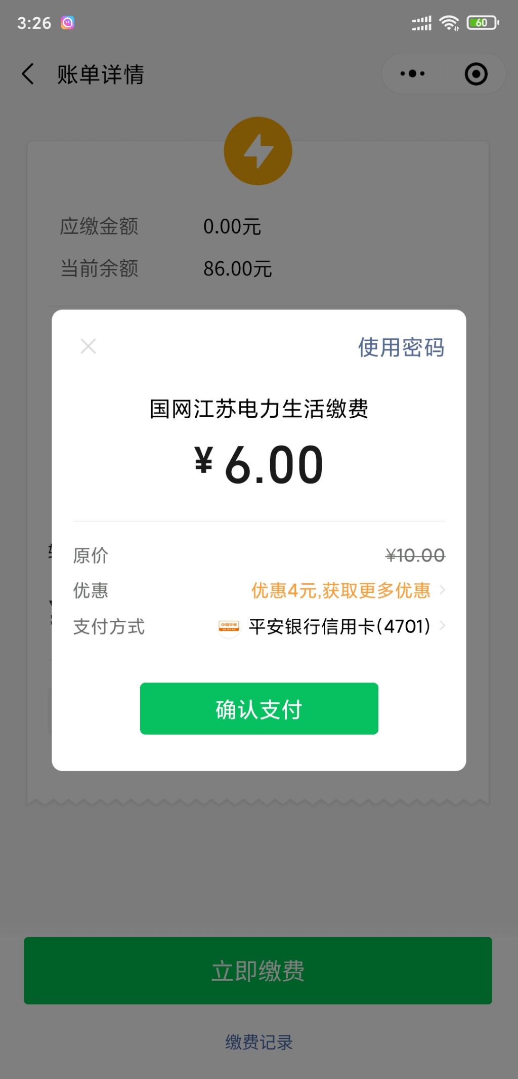 平安xing/用卡微信端满4减4