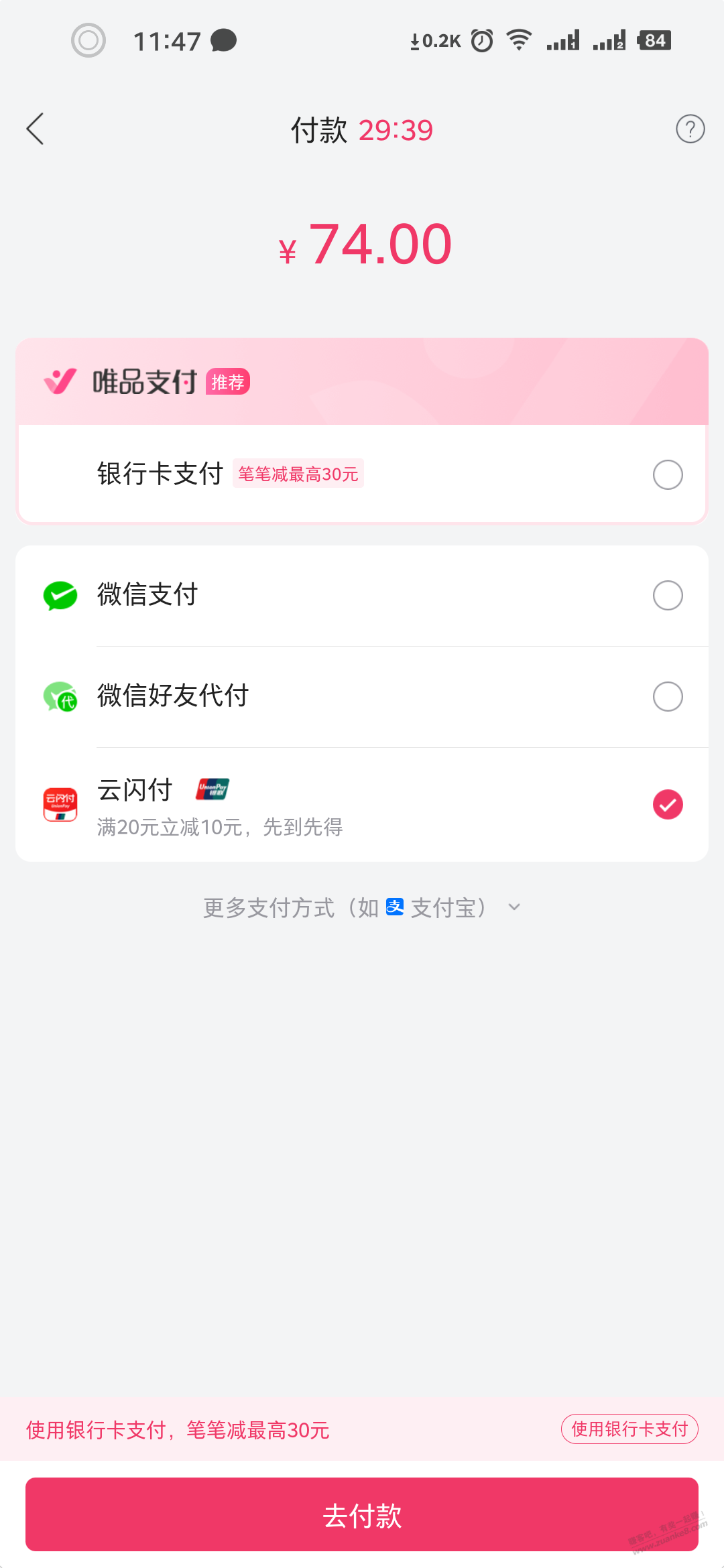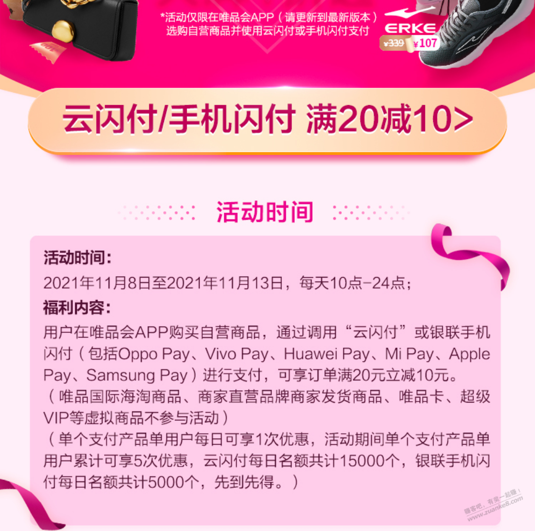 唯品会的云闪付20-10 还有名额