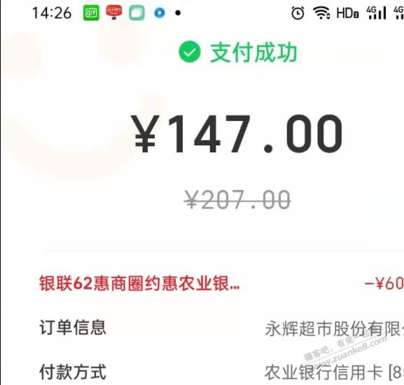 福建农行 永辉云闪付200-60 速度去
