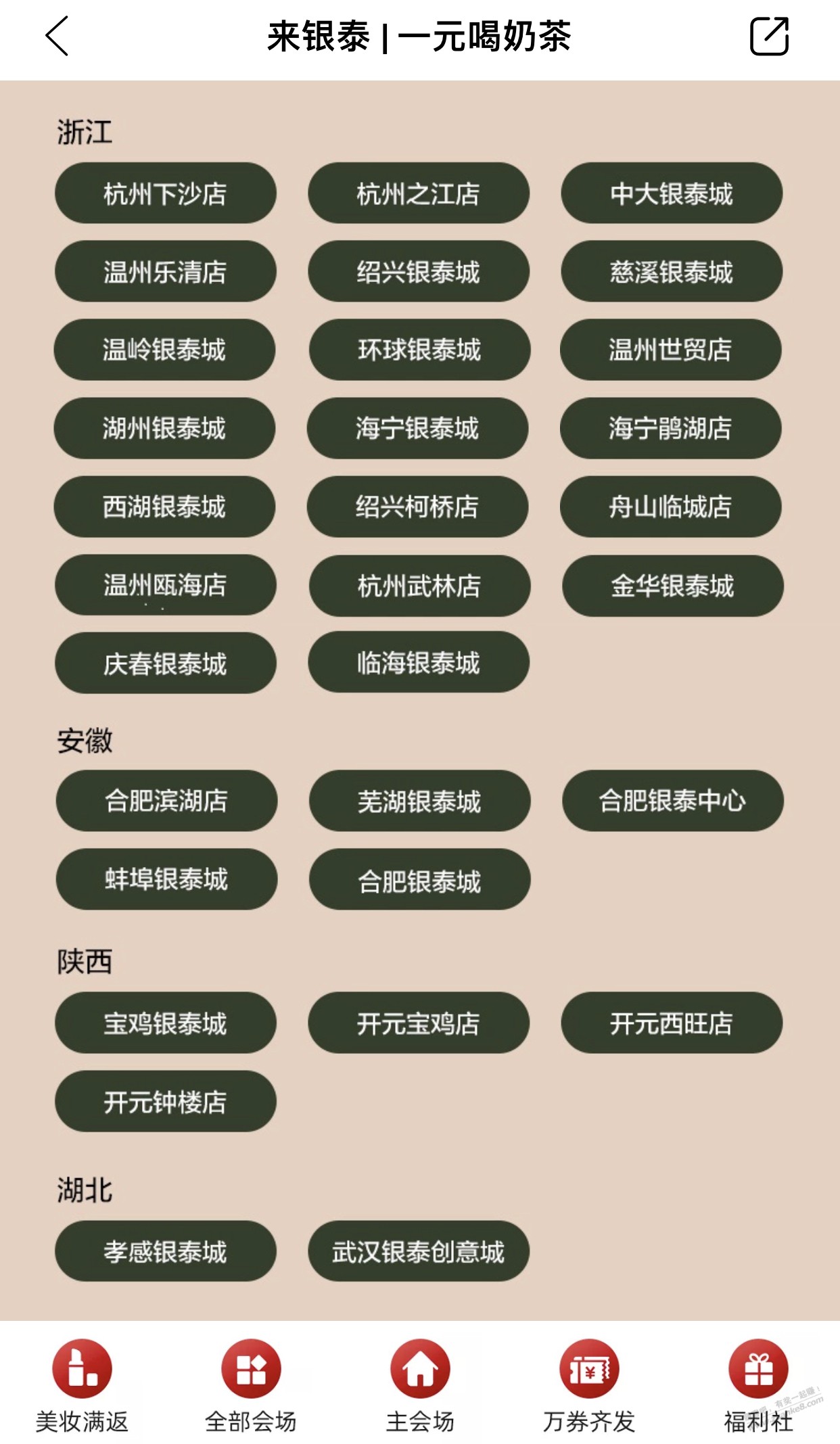 喵街线下一元喝奶茶,浙江安徽陕西湖北。