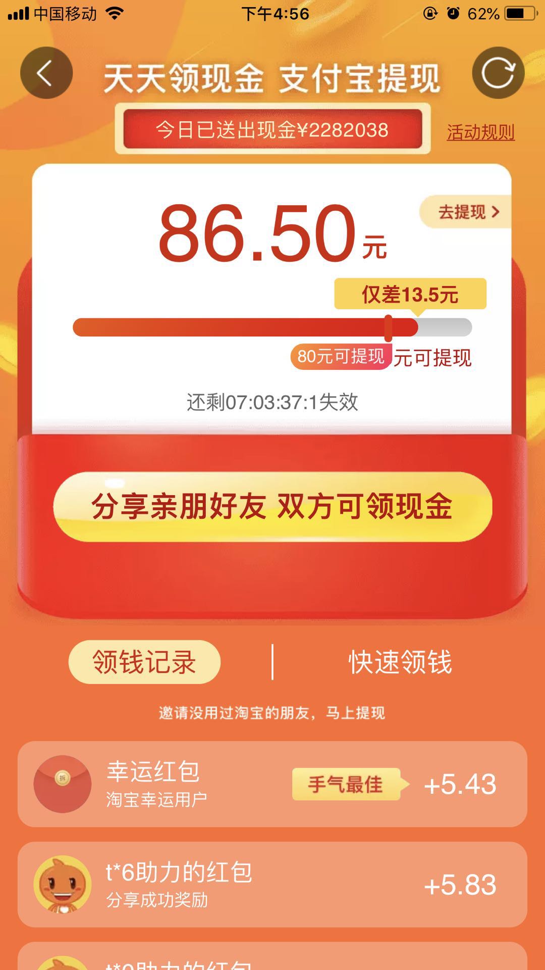 注册了个淘宝新号助力,真是惊呆了。。一个新号就助力6块多,再加幸运红包10多块。。