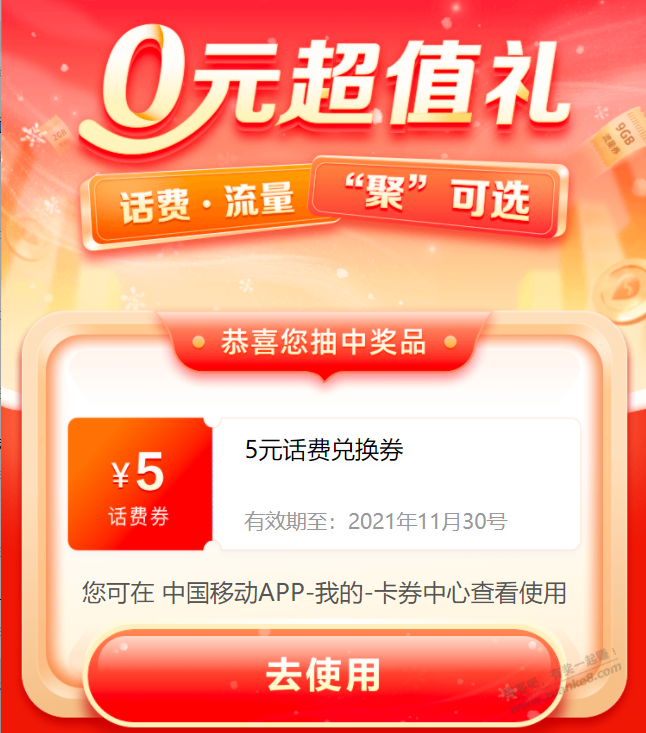 移动app给灵犀发送(春日福利加倍)领取话费券