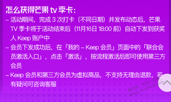 keep会员打卡三天得三个月芒果会员