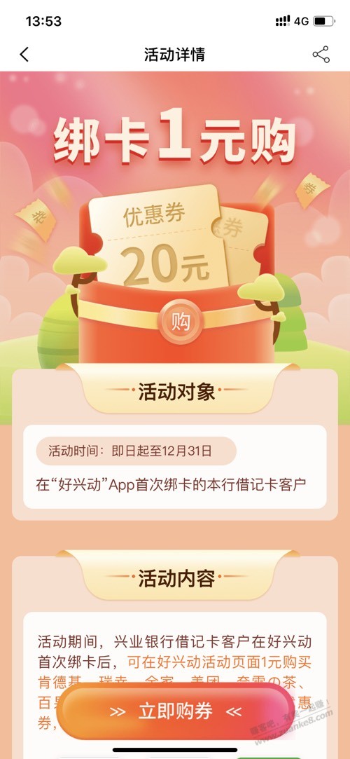 兴业-好兴动app1元购20美团外卖