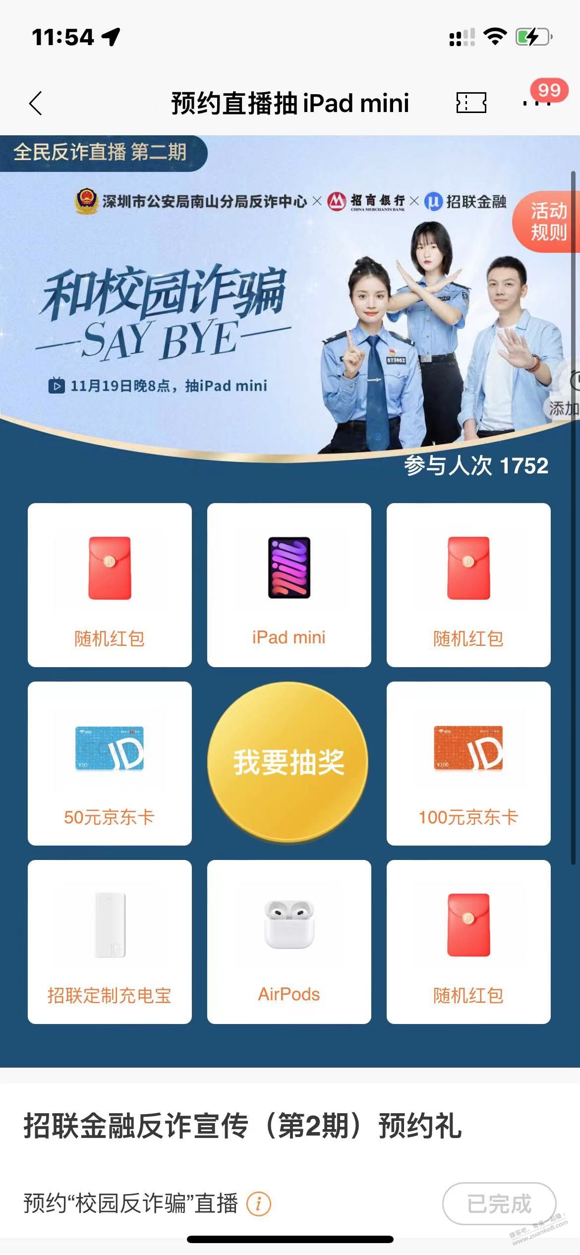 招行抽奖 有平板 100E卡 耳机 速度 中了记得加果